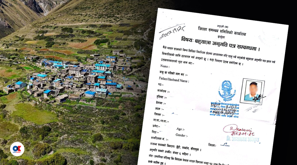 सीमा पारीबाट आउजाउ गर्न ‘बहुयात्रा अनुमतिपत्र’ चाहिन्छ । यस्तो पास भएपछि सीतापुल, गर्ब्याङ र वुँदी हुँदै यात्रा गर्न पाइन्छ ।
