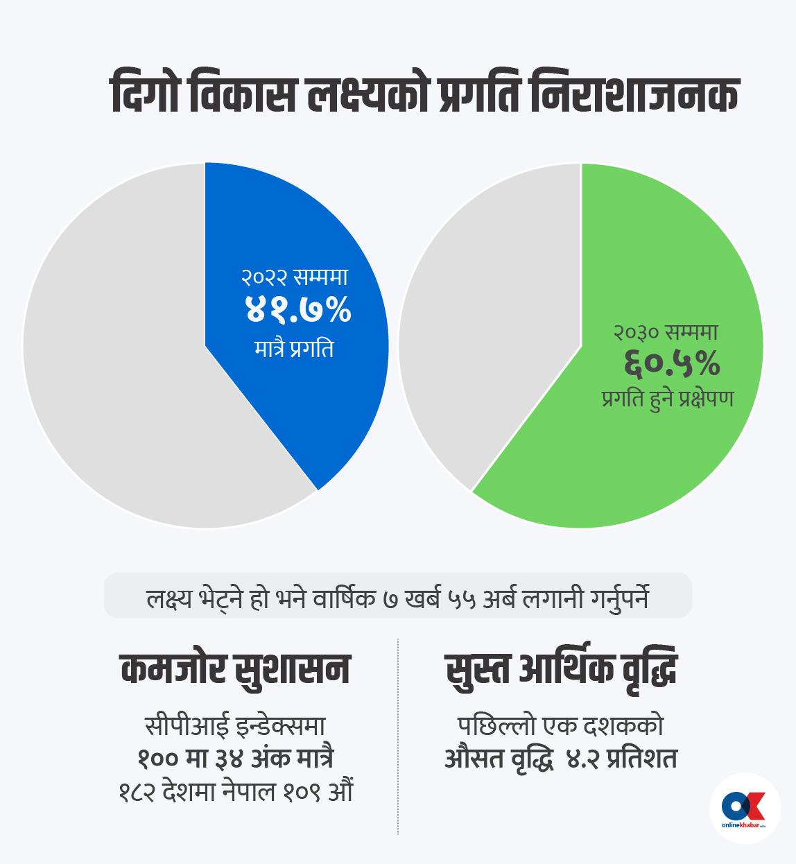 • नेपालले आर्थिक वृद्धिदर औसत ४.२ प्रतिशत मात्र राख्दै मर्यादित रोजगारी र पूँजीगत खर्चमा कमजोरी भोगिरहेको छ।