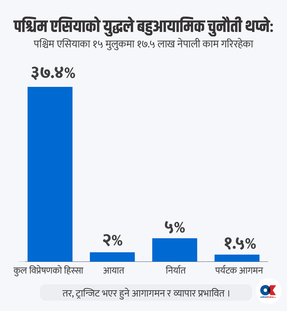 • पश्चिम एसियाको युद्धले नेपाली कामदार र रेमिट्यान्समा बहुआयामिक चुनौती थपेको अर्थ मन्त्रालयले जनाएको छ।