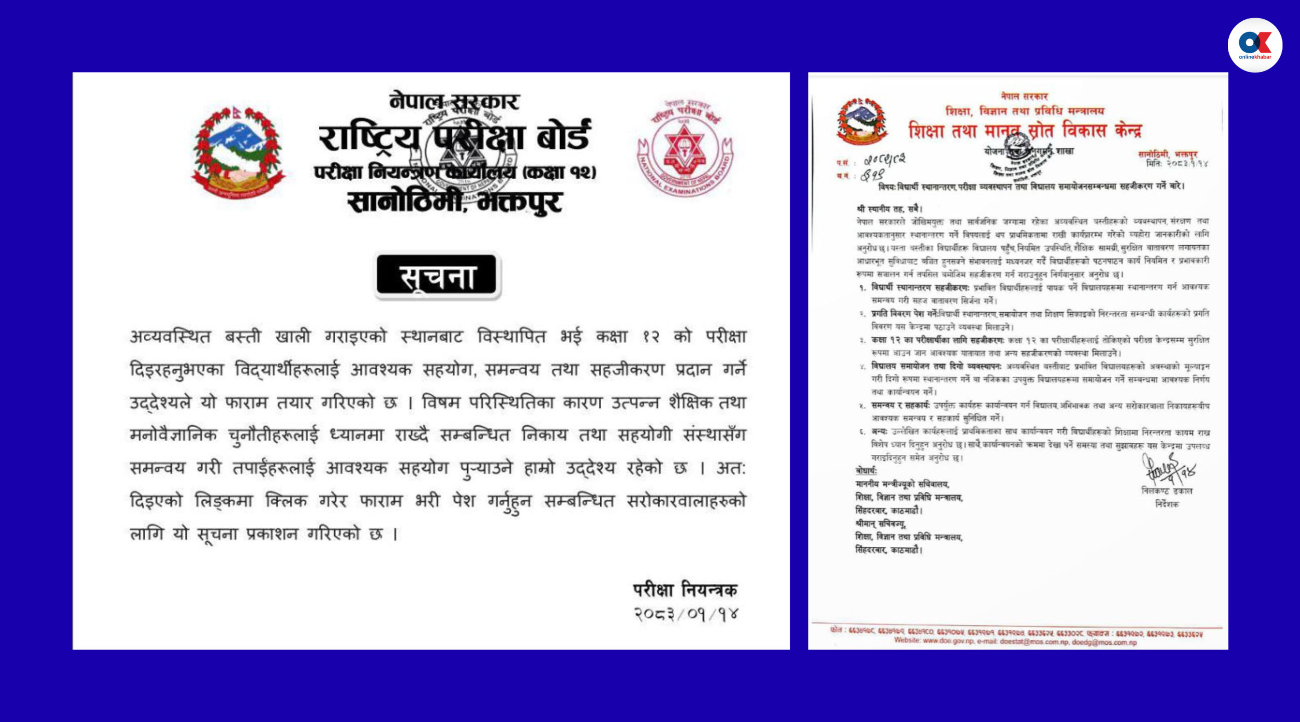 - राष्ट्रिय परीक्षा बोर्डले सहजीकरणको सूचना जारी गरे पनि परीक्षा दिइरहेका विद्यार्थीहरूलाई आवश्यक सहयोग प्राप्त भएको छैन।