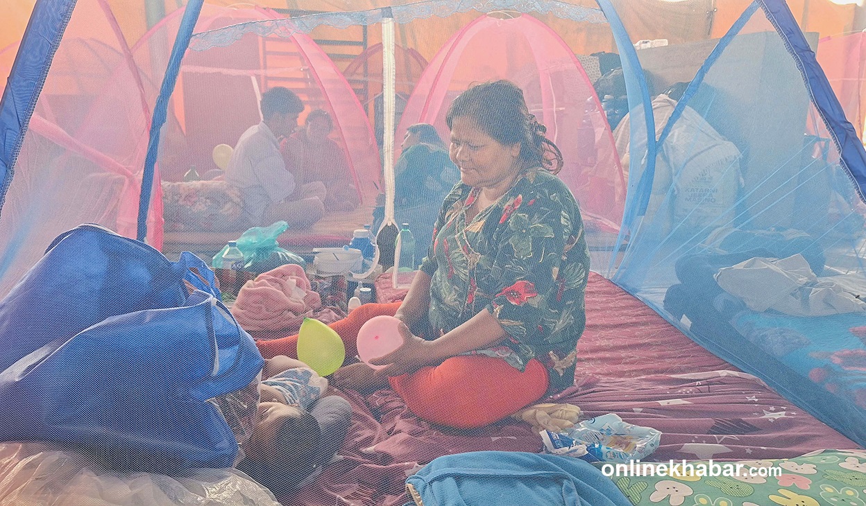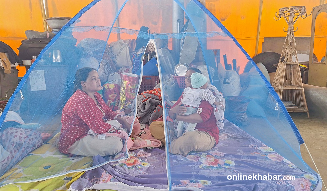 ‘हिजो र अस्ति राति आँखा झिम्मक पनि गर्न पाइएन,’ छोरीलाई लामखुट्टेले टोकेको रातो डाम देखाउँदै सविनाले बह पोखिन्, ‘अझै यो चिसो भुइँमा कति रात कटाउनुपर्ने हो ।’