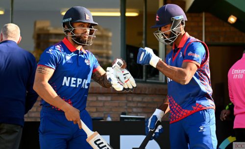 २ असोज, काठमाडौं – नेपालका कप्तान रोहित पौडेलले आईसीसी विश्वकप लिग–२ मा ओमानविरुद्ध अर्धशतक प्रहार गरेका छन् । रोहितले ६४ बलमा २ चौका र ३ छक्कासहित अर्धशतक पूरा गरेका...