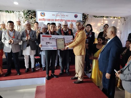 १३ मंसिर, काठमाडौं ।मदन भण्डारी स्पोर्ट्स एकेडेमीले विभिन्न १८ खेलको राष्ट्रयव्यापी प्रतियोगिताका साथै प्रशिक्षण तथा अन्तरक्रिया कार्यक्रम आयोजना गर्ने भएको छ । एकेडेमीले बिहीबार पत्रकार सम्मेलन गर्दै आफ्नो राष्ट्रव्यापी...