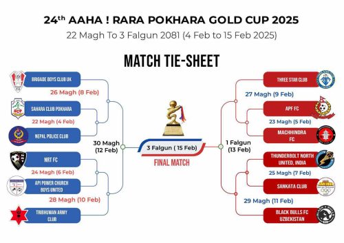 ४ भदौ, काठमाडौं । हिमालयन फुटबल क्लबको आयोजना दोस्रो हिमालयन फुटसल गोल्डकप भदौ दोस्रो साता हुने भएको छ। बुधबार पत्रकार सम्मेलनमार्फत आयोजकले यही भदौ १२ र १३ गते हुने...