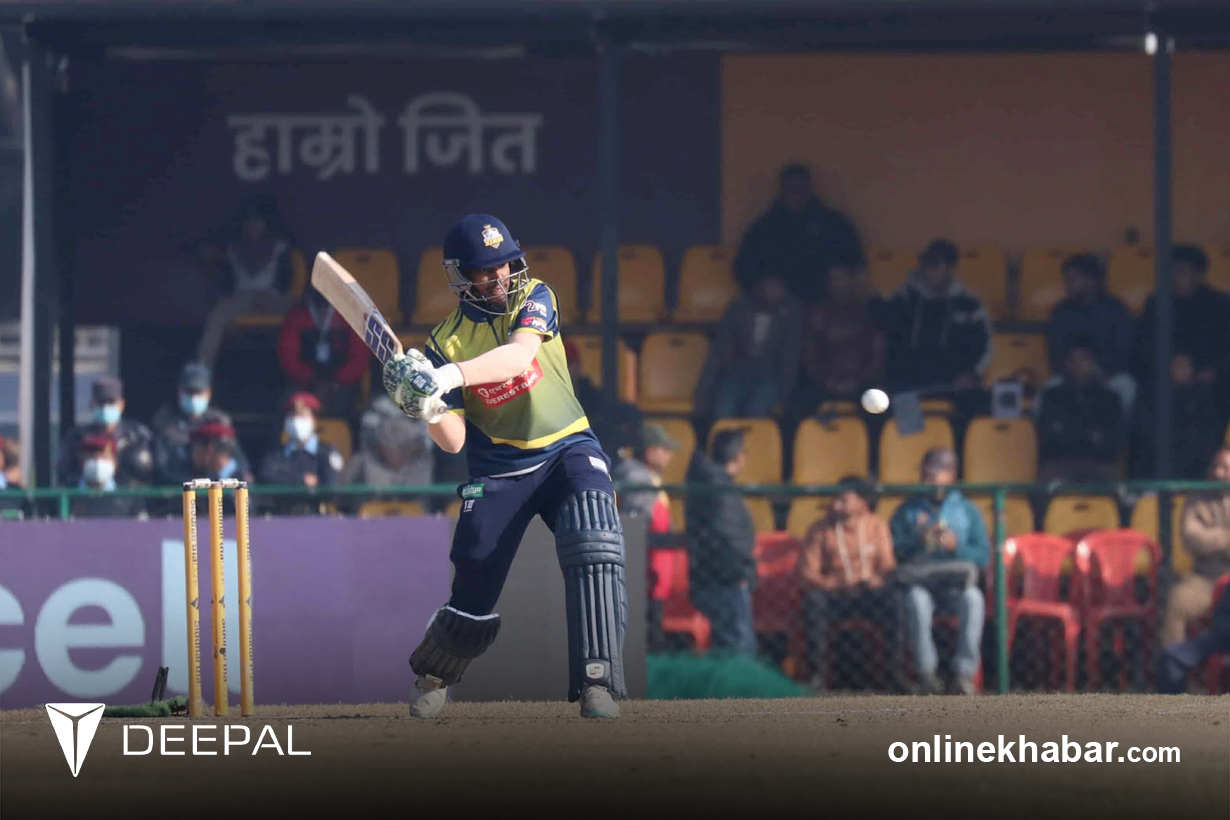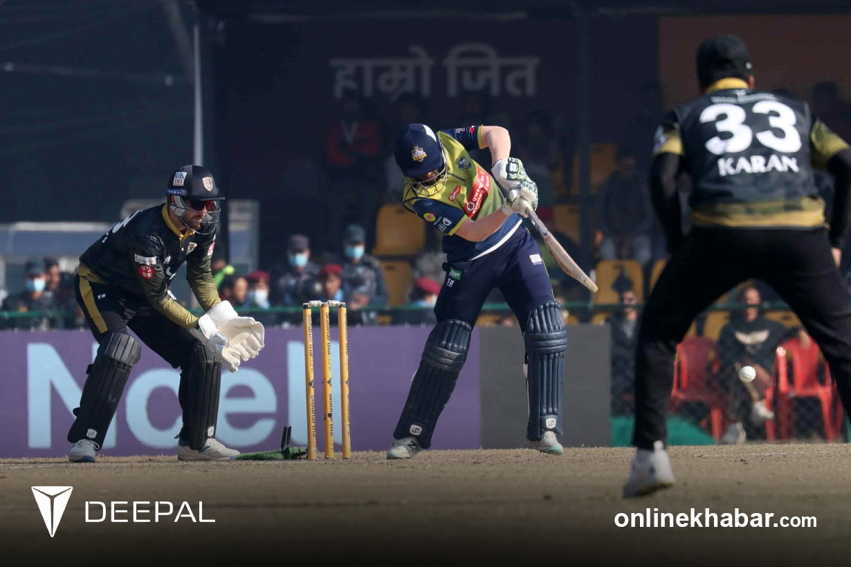 FOUR ! GAME OVER !! KATHMANDU WIN !!! कँडेलले कभरमा गाइड गरेका छन् । चौका हुनेछ । काठमाण्डुको जित । प्लेअफको आशा अझै जीवितै ।
