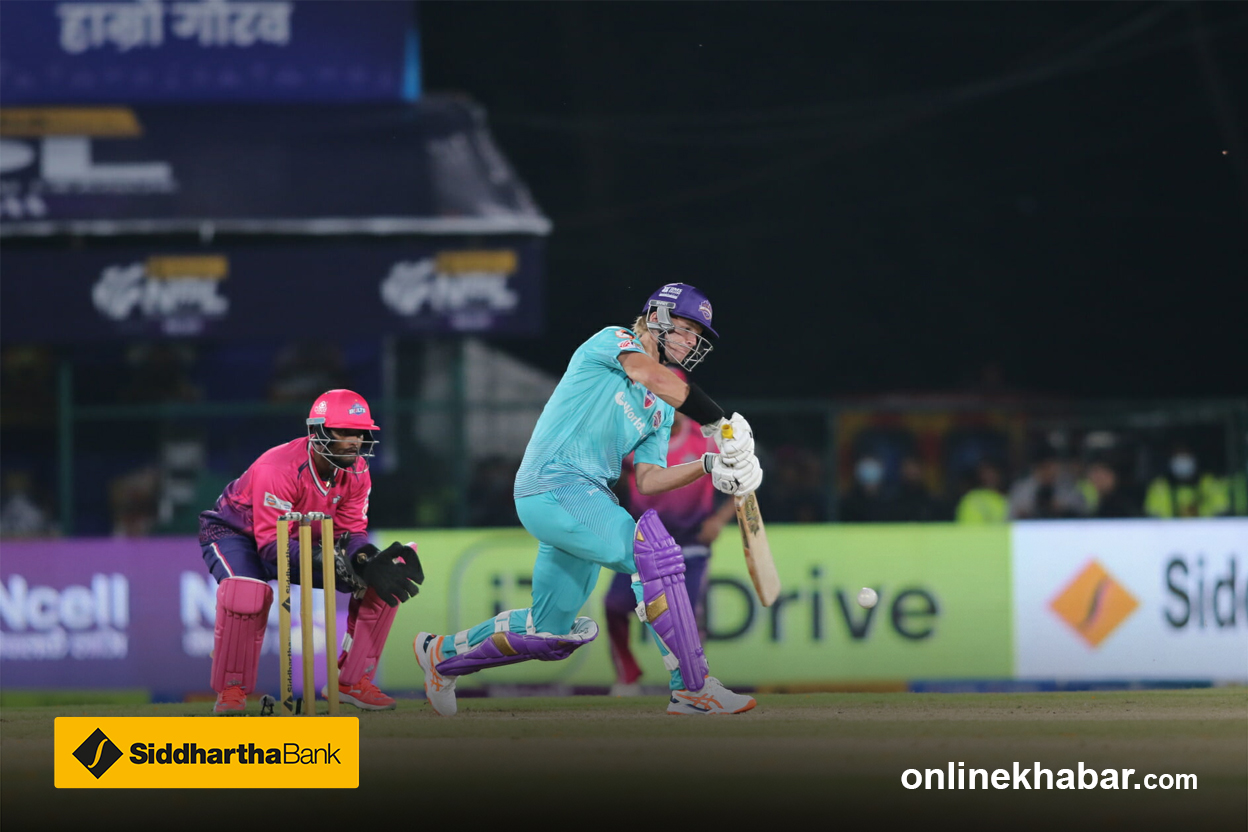 जनकपुरका लागि आसिफ शेखले अर्धशतक प्रहार गरेपनि योगफल त्यति राम्रो खडा गर्न सकेन । काठमान्डुका मिलिन्द कुमारले शानदार बलिङ गर्दा जनकपुरको मिडल अर्डर धर्मराएको थियो । जवाफी ब्याटिङमा काठमान्डुले सुरुवातदेखि नै अट्याकिङ खेल खेलेको थियो र सहज जित हात पार्न सफल भयो ।