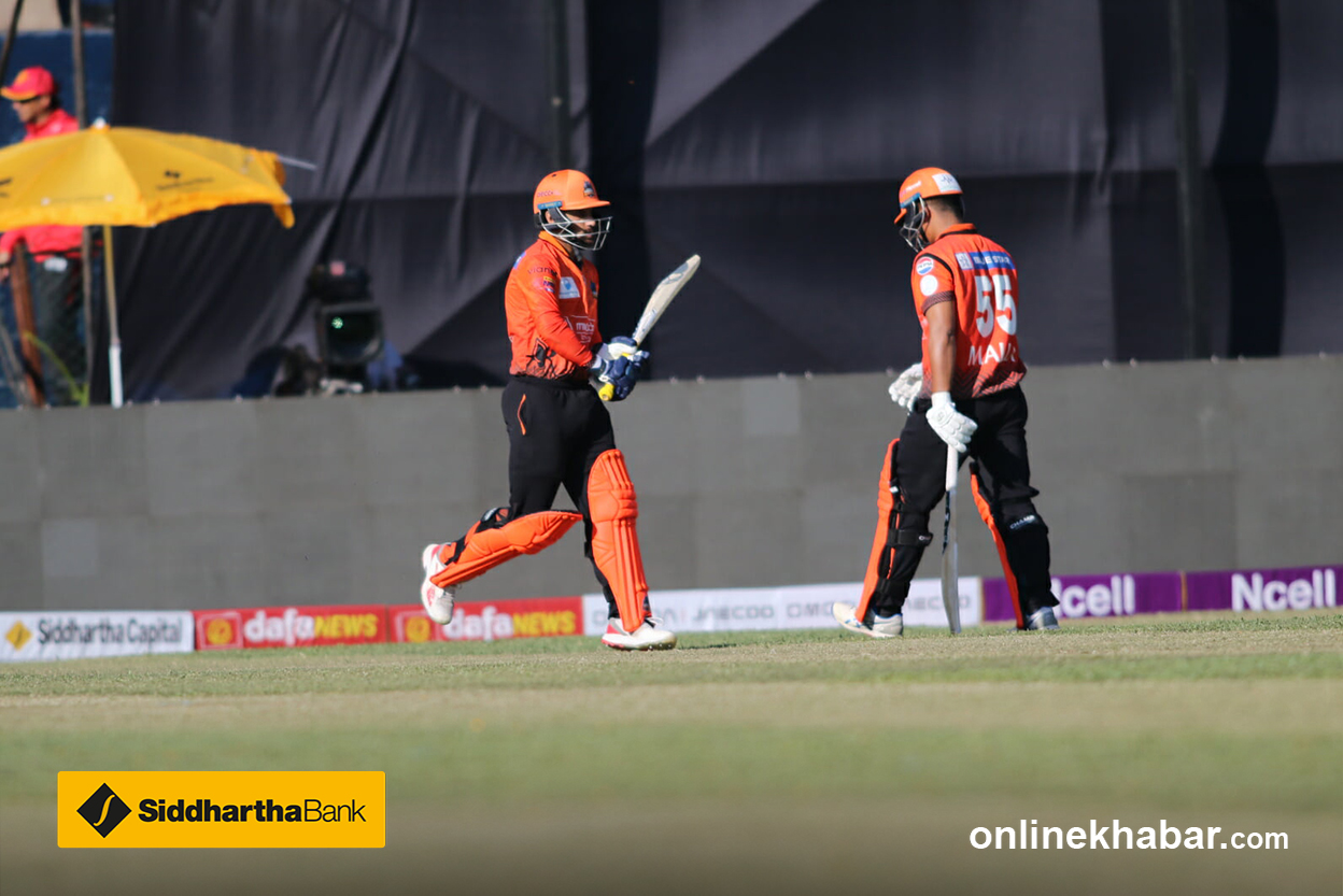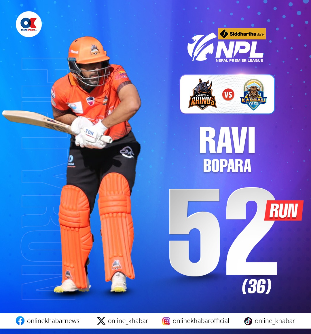 रवि बोपाराको अर्धशतक, सेफ जैबको क्यमिओ पारीको मद्दतमा चितवनले कर्णालीविरुद्ध ४ विकेटको जित हात पारेको छ । डाविड मलान सुरुमै आउट भएपनि दीपक बोहराले ४२ रन बनाएर इनिङ सम्हालेका थिए । त्यसपछि बोपाराले संयमित भएर खेले । सेफ जैबले जीवनदान पनि पाए । आक्रामक ब्याटिङ गर्दै १६ बलमा ३८ रन बनाएर आउट भए । बोपाराले अर्धशतक बनाएर टोलीलाई जित दिलाए ।