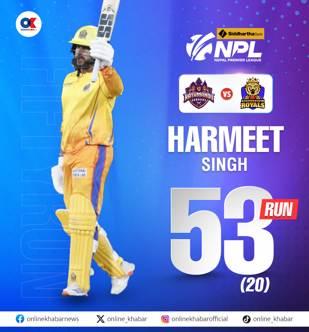 ब्याटिङमा हर्मीत सिंहको आक्रामक ब्याटिङमा सुदूरले १६औं ओभरमा २१ र १७औं ओभरमा २४ गरी कूल ४५ रन जोडेको थियो । यस्तै बलिङमा उनले एकै ओभरमा आकाश त्रिपाठी र आदिल आलमको विकेट लिएका थिए ।