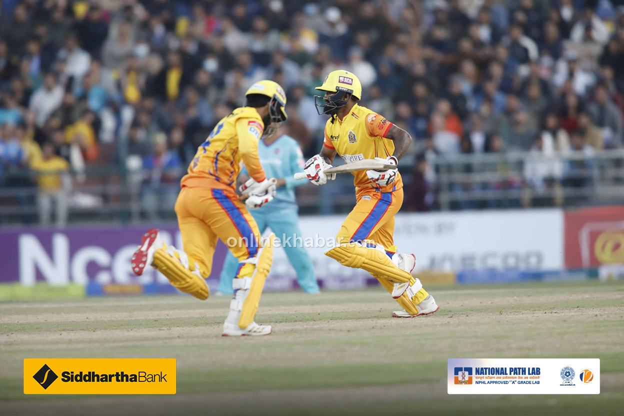 पावर प्लेमा काठमान्डुले ३ विकेट गुमाएर ५० रन बनाएको छ ।