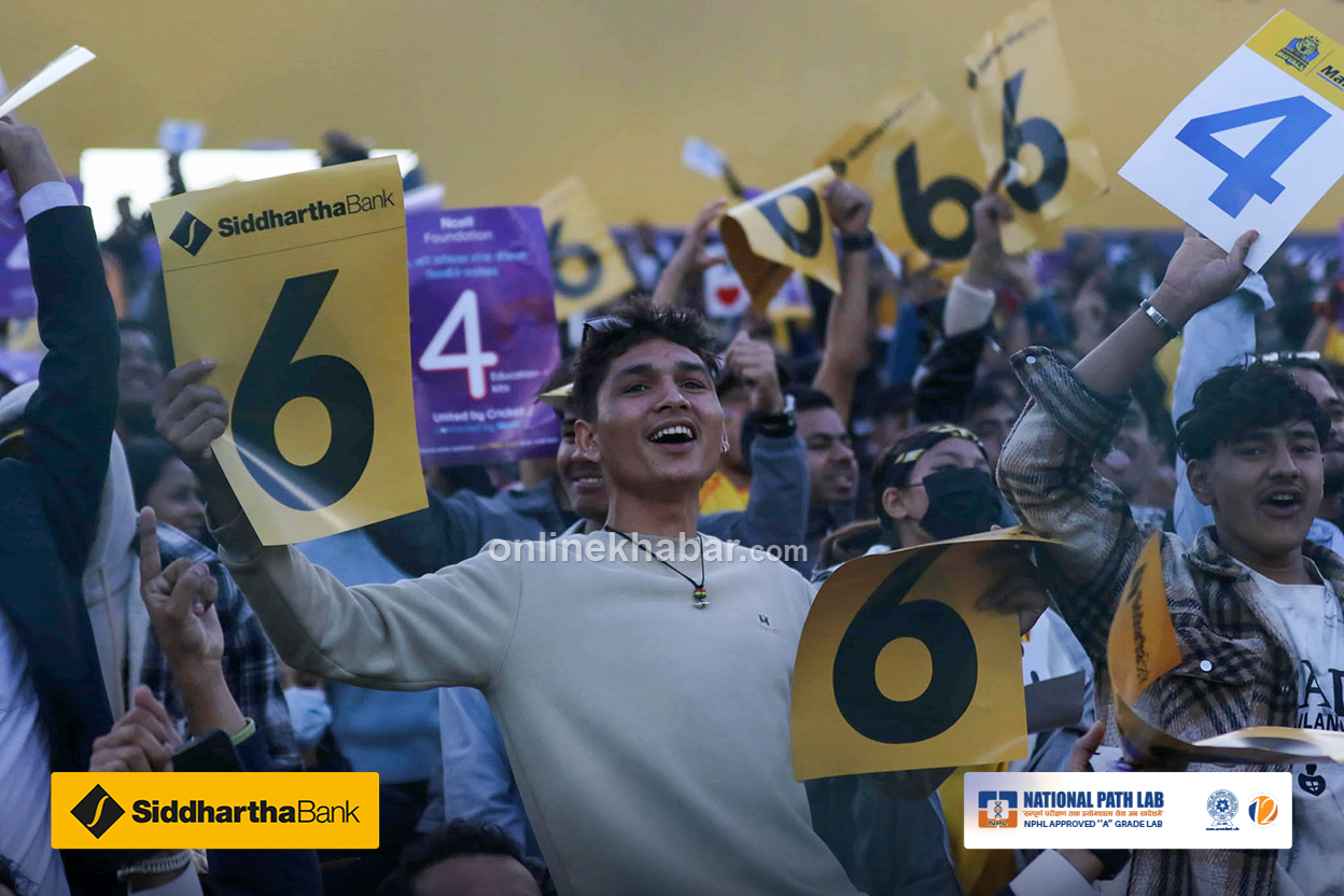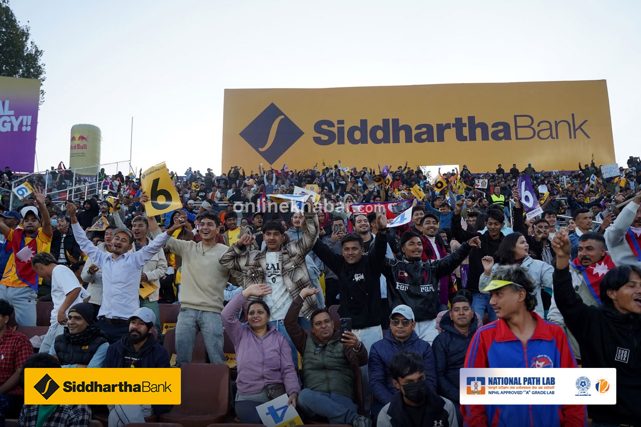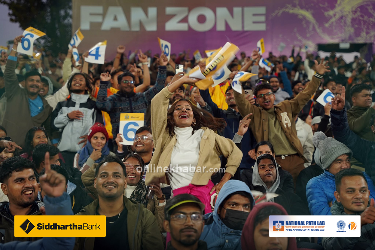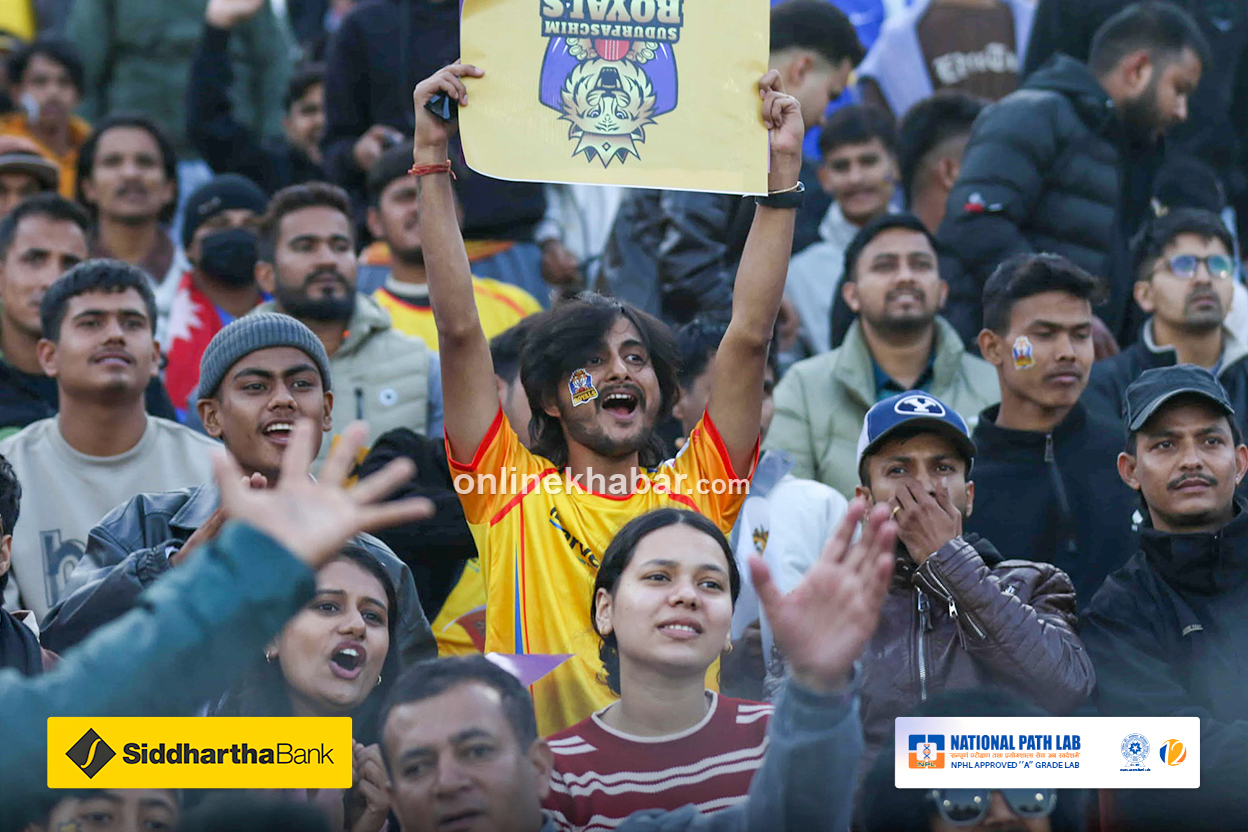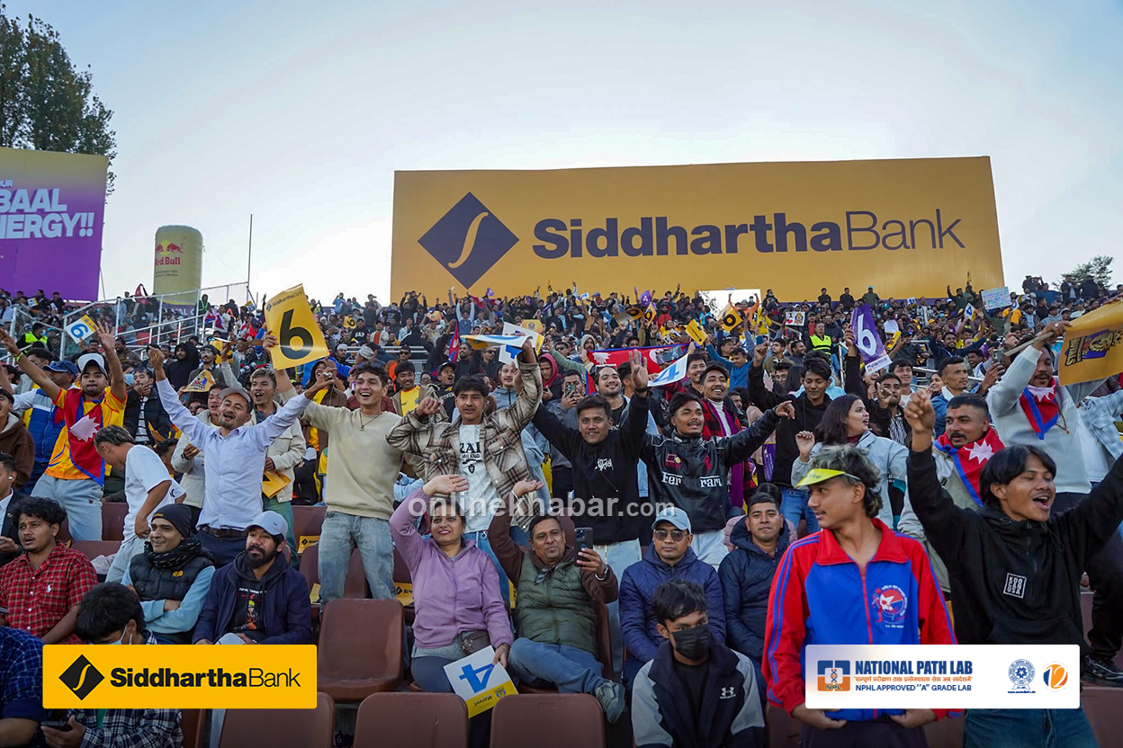 एनपीएलको तेस्रो दिन काठमान्डू गोर्खाज र सुदूरपश्चिम रोयल्सबीच स्पर्धा खेल चलिरहँदा टियू क्रिकेट मैदानमा दर्शकको रौनक ।