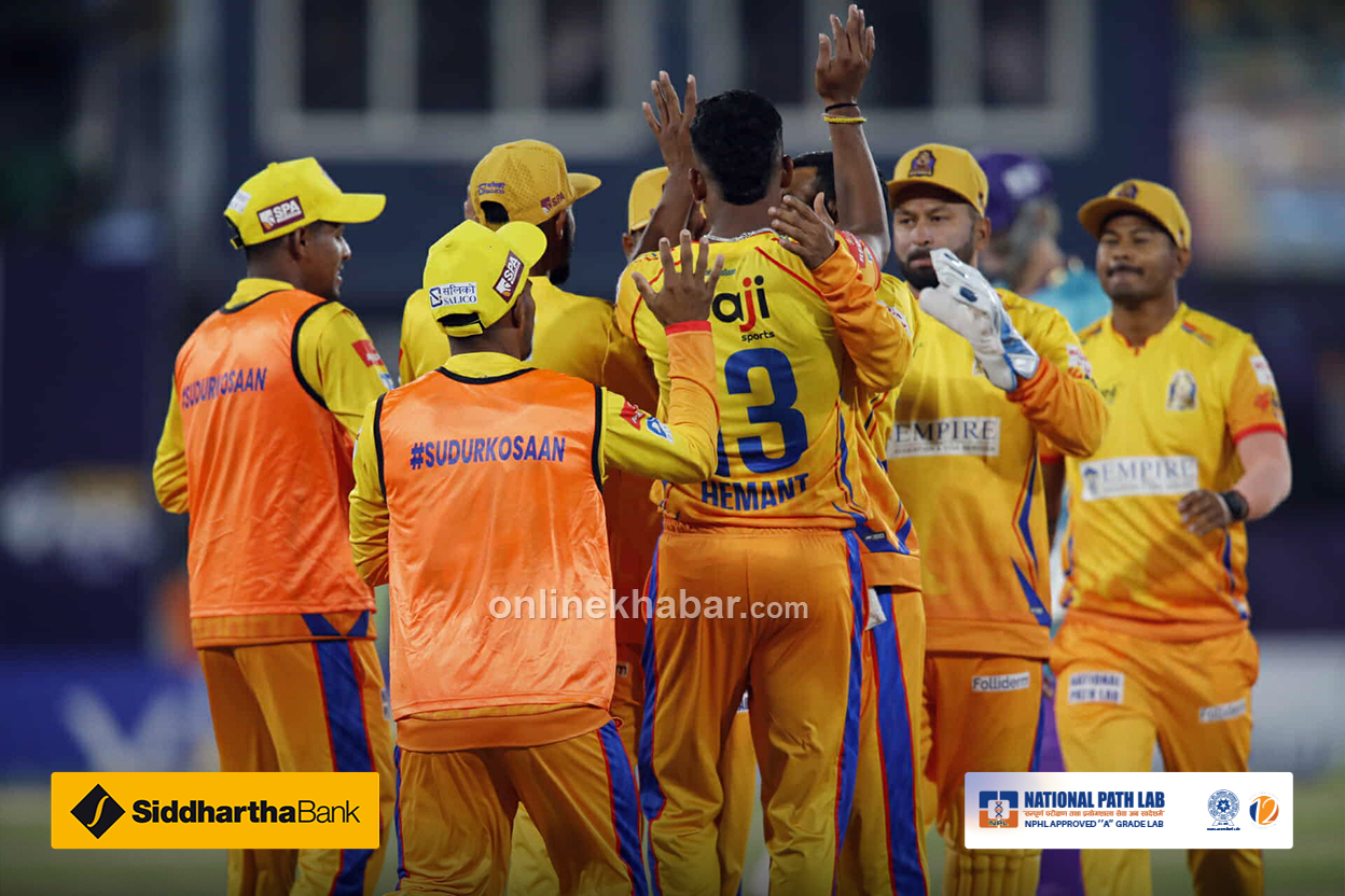 सुदूरपश्चिम रोयल्सले ब्याटिङ र बलिङमा शानदार पुनरागमन गर्दै खेल जितेको छ । ब्याटिङ र बलिङ दुवैमा हर्मीत सिंहको प्रदर्शन शानदार रह्यो ।