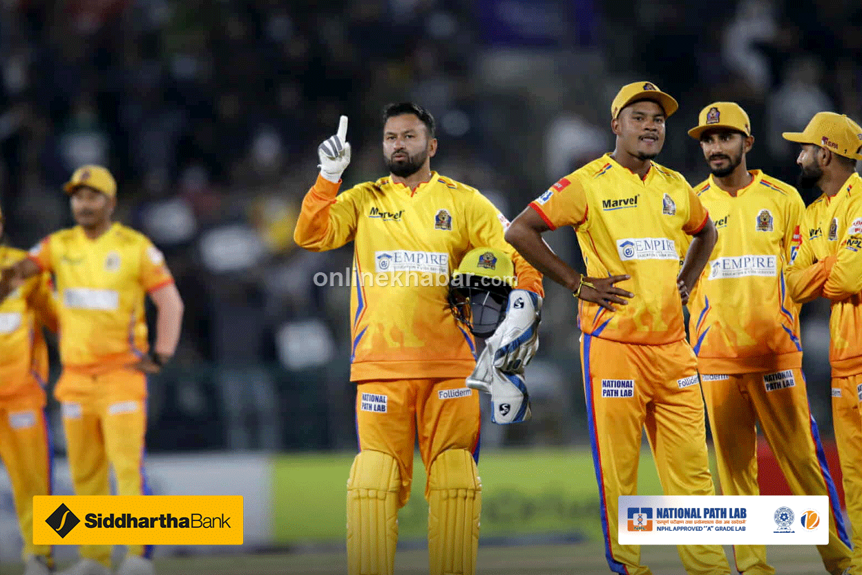 योसँगै आजको खेलको बल बाइ बल लाइभ अपडेटबाट गोविन्दराज नेपाल र प्रतिक भट्टसँगै अनलाइनखबर टिम बिदा माग्न चाहन्छौं । भोलि हुने लुम्बिनी लायन्स र चितवन राइनोजबीचको खेलको अपडेट लिएर फेरि उपस्थित हुनेछौं । नमस्कार । शुभ रात्रि ।