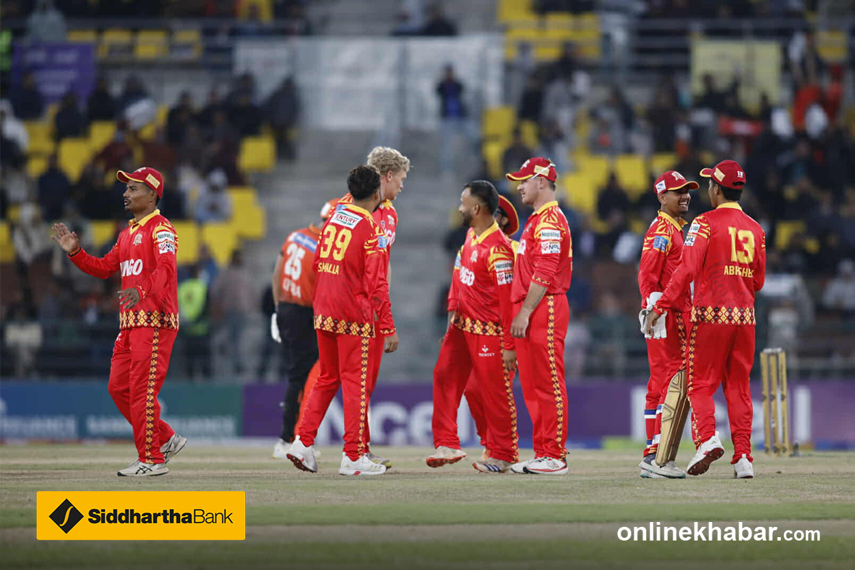 योसँगै आजको खेलको बल बाइ बल अपडेटबाट अनलाइनखबर टिमसहित गोविन्दराज नेपाल र प्रतिक भट्ट बिदा माग्न चाहन्छौं । भोलि हुने सुदूरपश्चिम रोयल्स र पोखरा एभेन्जर्सबीचको खेलको बल बाइ बल अपडेट लिएर फेरि उपस्थित हुनेछौं । नमस्कार । शुभ रात्रि ।