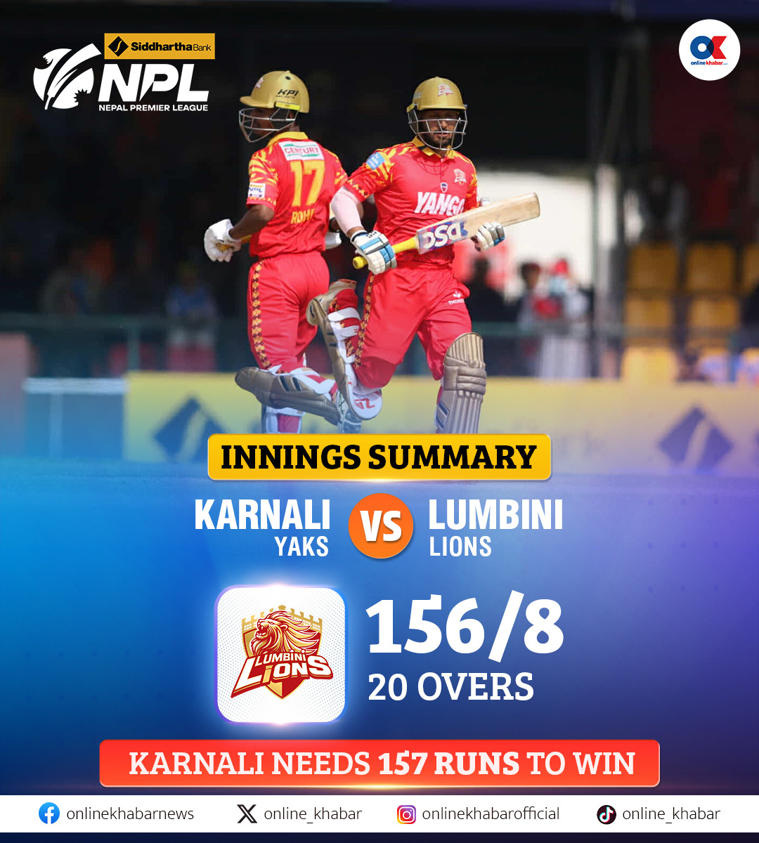 कर्णालीले १५७ रनको लक्ष्य कति ओभरमा पूरा गर्ला ? वा लुम्बिनीले डिफेन्ड गर्ला त ? दोस्रो इनिङ केहीबेरमा सुरु हुनेछ ।