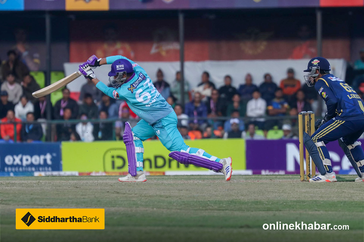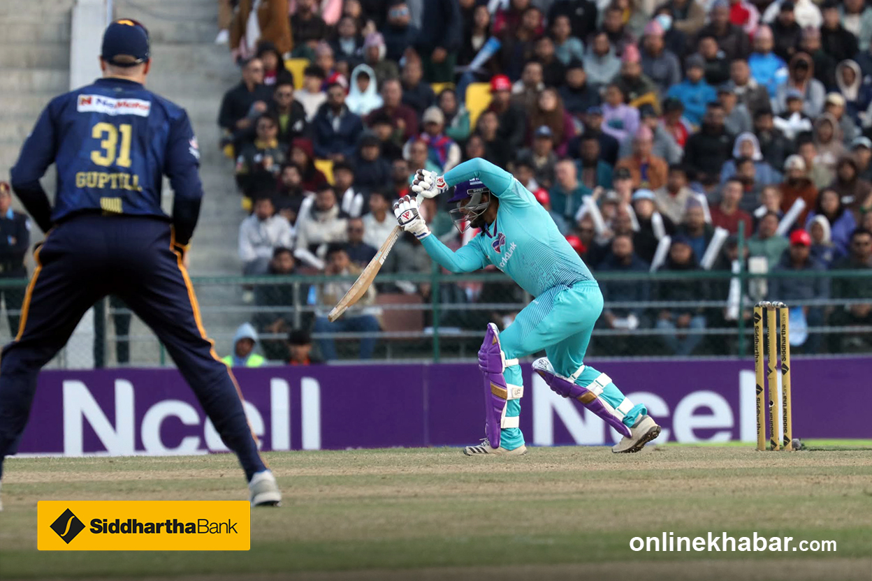 जर्ज मन्सेले विस्फोटक ब्याटिङ गर्दै १६ बलमा ३६ रन बनाए भने मार्टिन गप्टिलले १९ बलमा २५ रन बनाए । काठमान्डुले सुरुवातमै आवश्यक विकेटहरू लिन सकेन ।