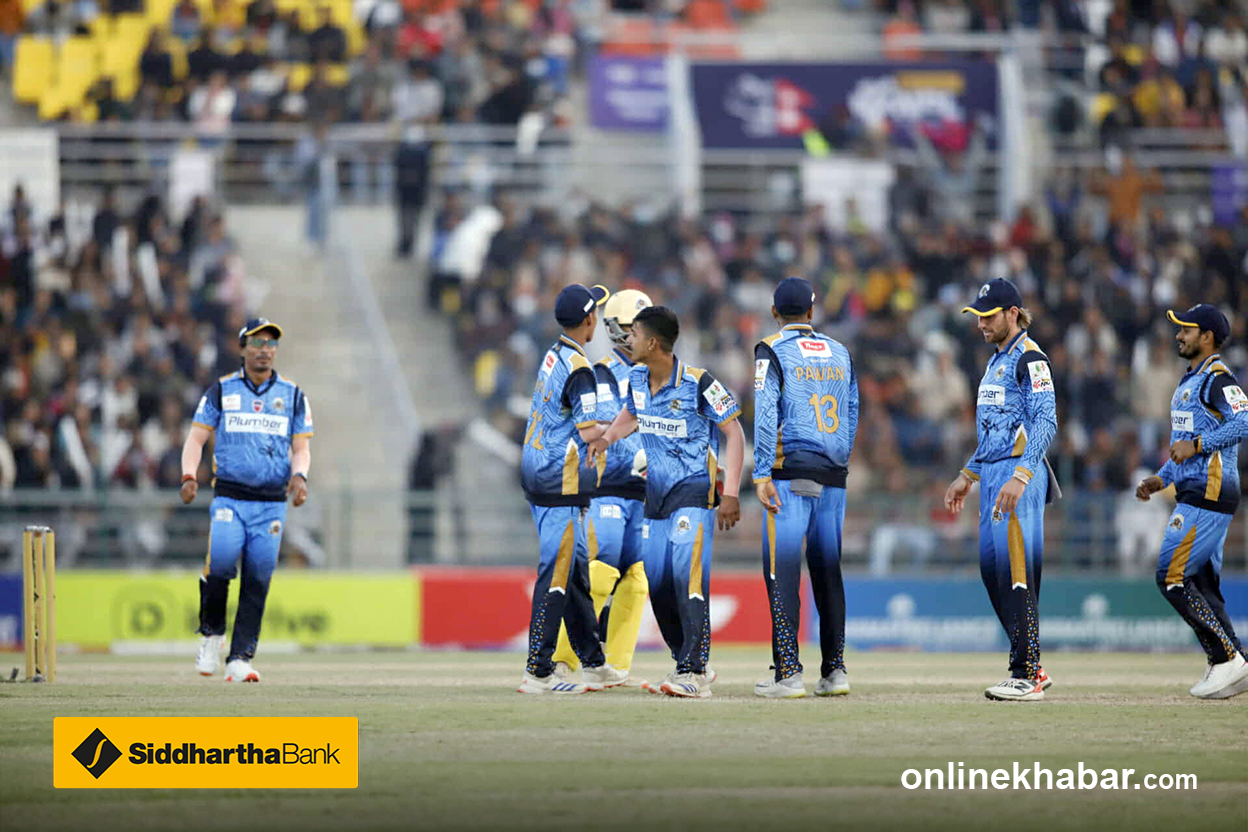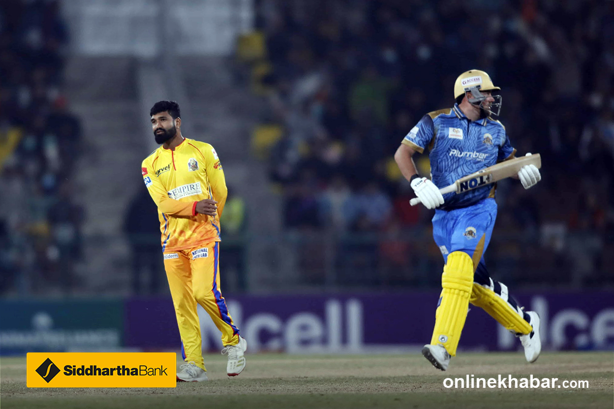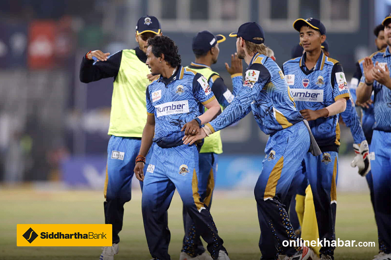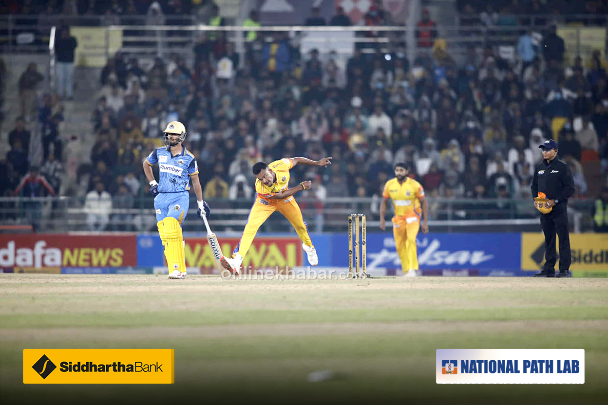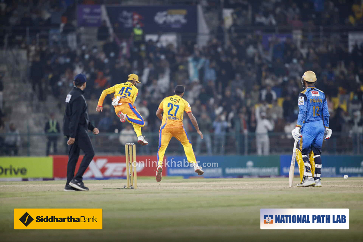 योसँगै आजको खेलको बल बाइ बल अपडेटबाट गोविन्दराज नेपाल र प्रतिक भट्टसहित अनलाइनखबर टिम बिदा माग्न चाहन्छौं । भोलि एक खेल मात्र हुँदैछ । काठमान्डु गोर्खाज र लुम्बिनी लायन्सबीचको खेलको लाइभ अपडेट लिएर उपस्थित हुनेछौं । आजका लागि बिदा माग्न चाहन्छौं । अनलाइनखबर फलो गर्दै गर्नुहोला । नमस्कार, शुभ रात्रि ।