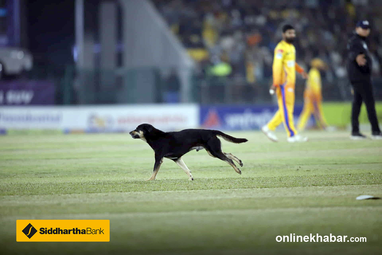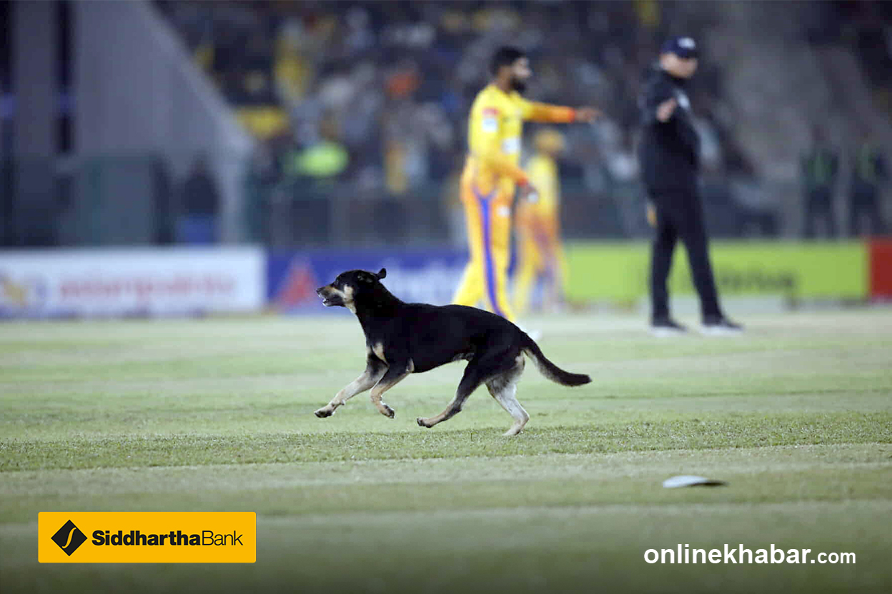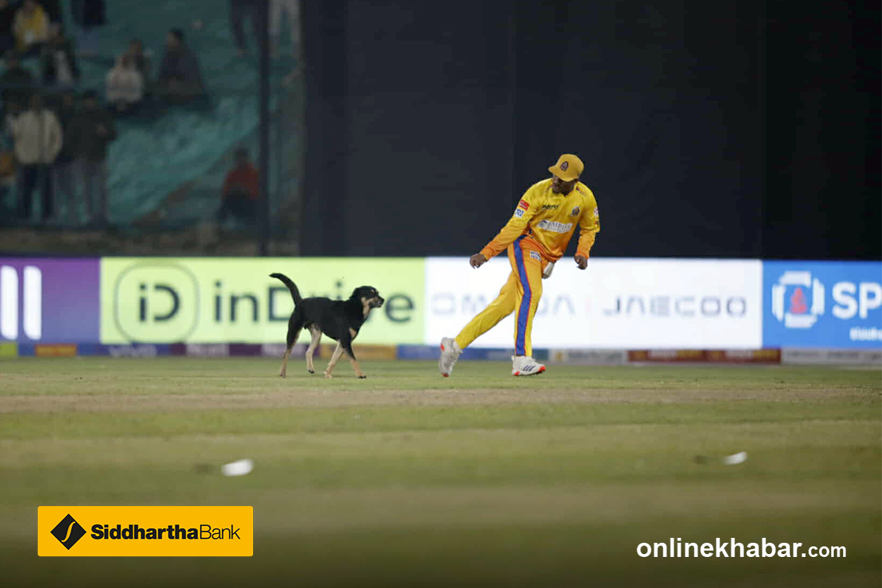 शर्ट फाइन लेगमा रहेका नन्दन यादवले मिसफिल्डर गर्दा बल चौकाका लागि गएको छ ।