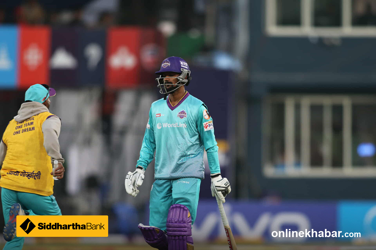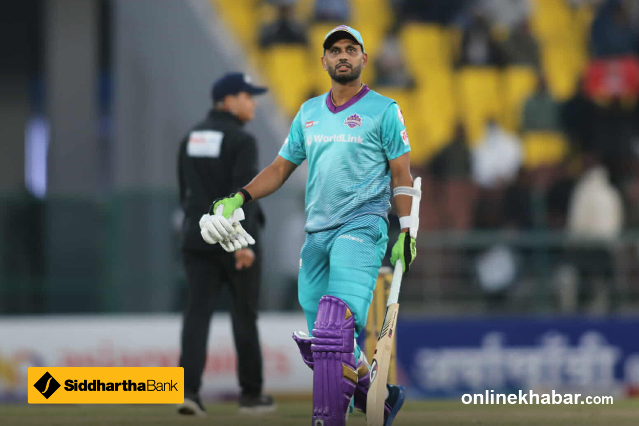 डार्शी शर्टको बलमा आकाश त्रिपाठी - १ रन