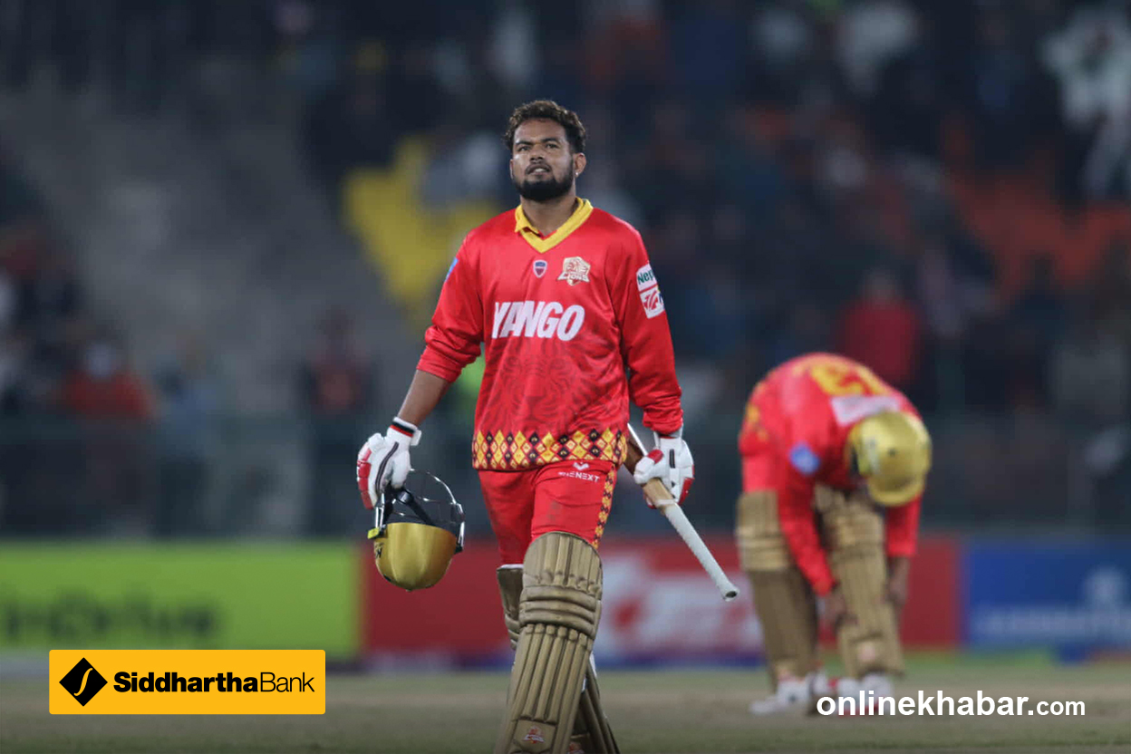 डार्शी शर्टको बलमा आकाश त्रिपाठी - १ रन