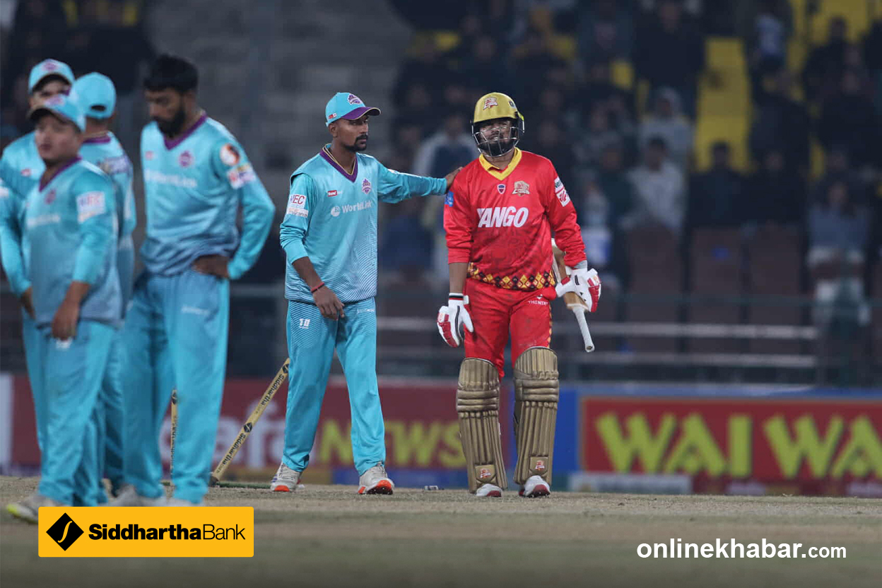 लुम्बिनीका ब्याटरहरूले संयमित सुरुवात गरेपनि बलियो साझेदारी हुन सकेन । कप्तान रोहित पौडेल आठौं ओभरमा एलबीडब्लु आउट भएपछि लुम्बिनी खेलमा फर्कन सकेन । काठमान्डुका मिलिन्द कुमार र जेरार्ड एरासमसले २-२ विकेट लिए । शाहब आलम, करण केसी, राशिद खान र सन्तोष यादवले १-१ विकेट लिए ।