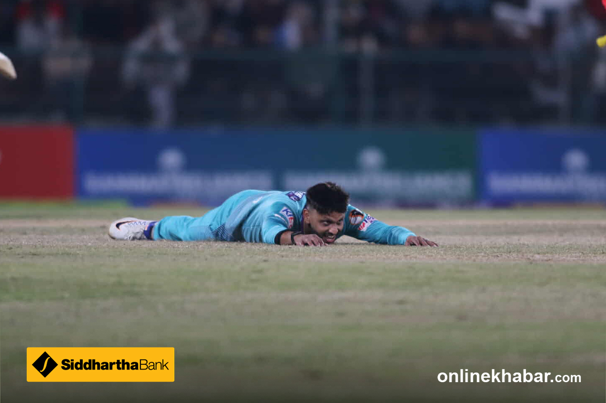 DROPPED ! मिडविकेटमा यही फिल्डर राखेका थिए क्याच जान सक्छ भनेर । फेरि सोही एरियामा खेलेका थिए। क्याच छाडेका छन् सुमित महर्जनले ।