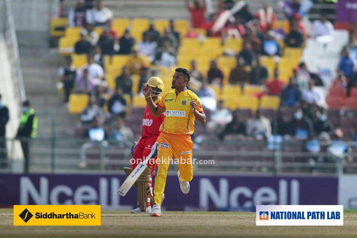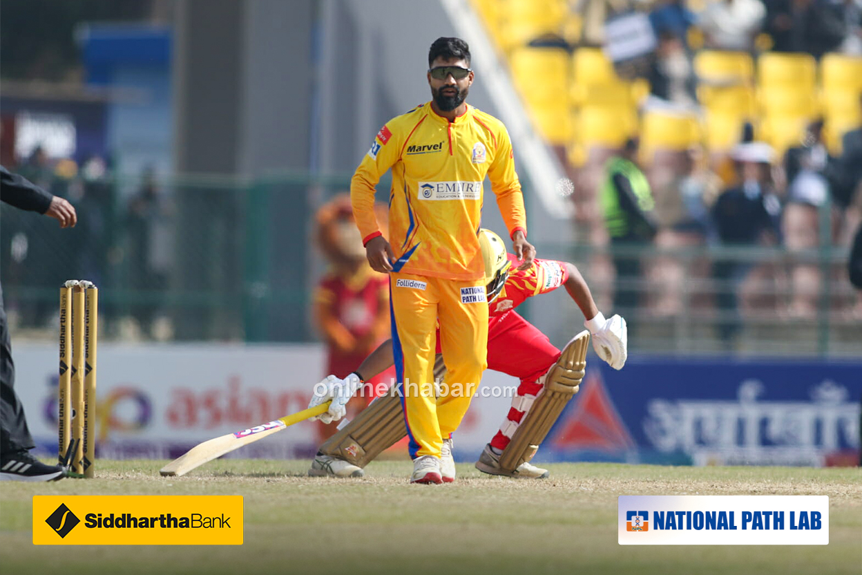 दीपेन्द्र सिंह ऐरीको बलमा दिलिप नाथ - १ रन