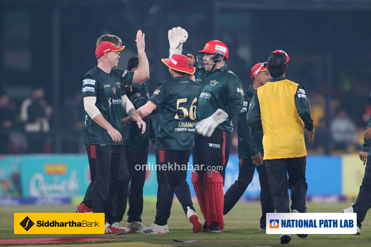योसँगै आजको खेलको बल बाइ बल अपडेटबाट बिदा माग्न चाहन्छौं । भोलि पनि २ खेल हुँदै छन् । चितवन राइनोज र काठमान्डु गोर्खाज तथा विराटनगर किङ्स र कर्णाली याक्स खेल्दै छन् । लाइभ अपडेट लिएर उपस्थित हुनेछौं । आजका लागि बिदा दिनुहोस् । नमस्कार, शुभ रात्रि ।