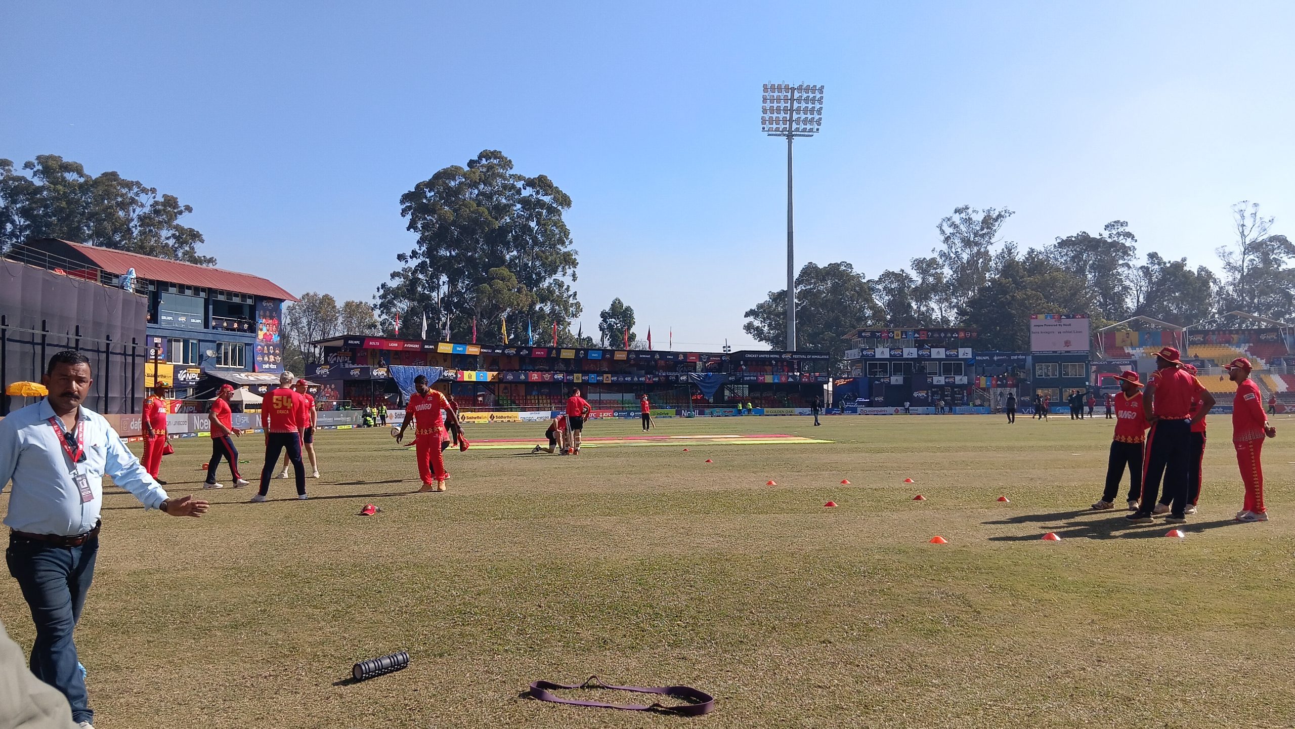 यसपटक बल माथि हावामा उठेको छ । मिडअनमा रोहित पौडेलले क्याच लिएका छन् ।