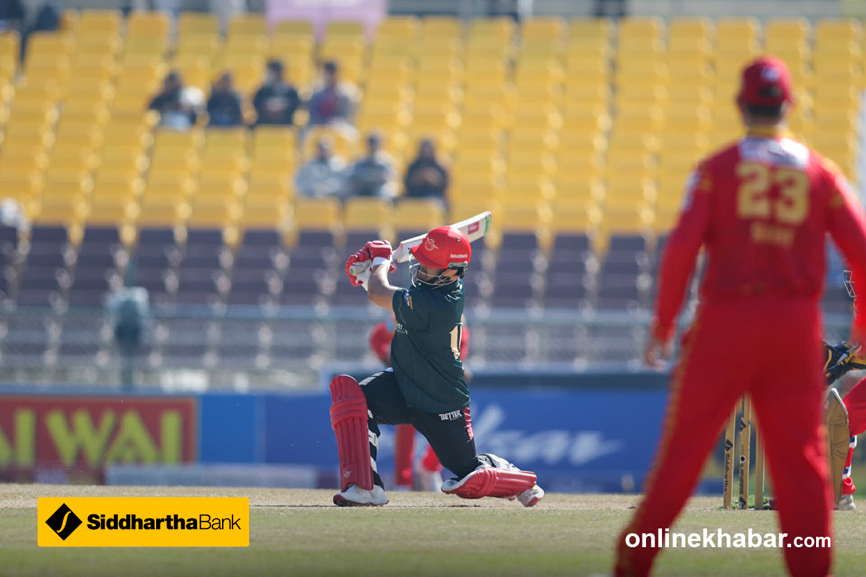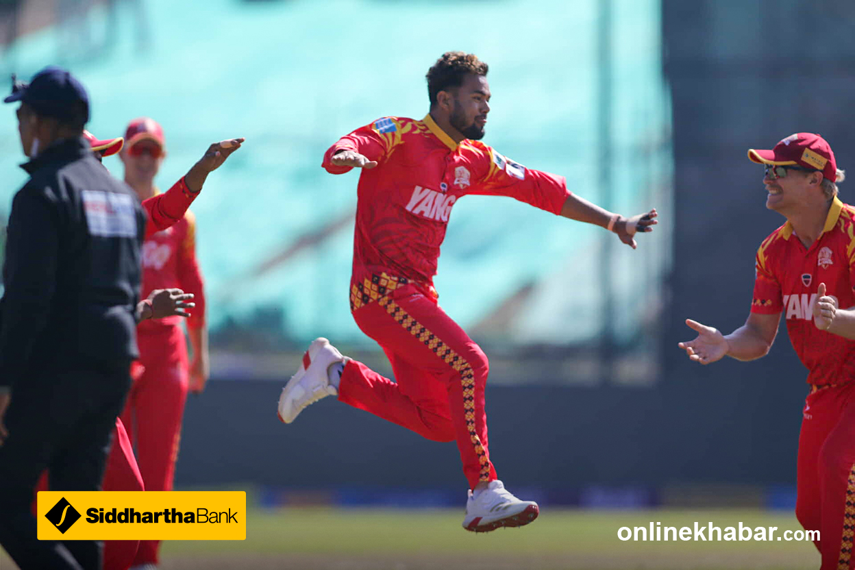 LBW ! GONE !! अघिल्लो खेलका स्टार ब्याटर सुमित आउट भएका छन् । पोखराले तेस्रो विकेट गुमाएको छ ।