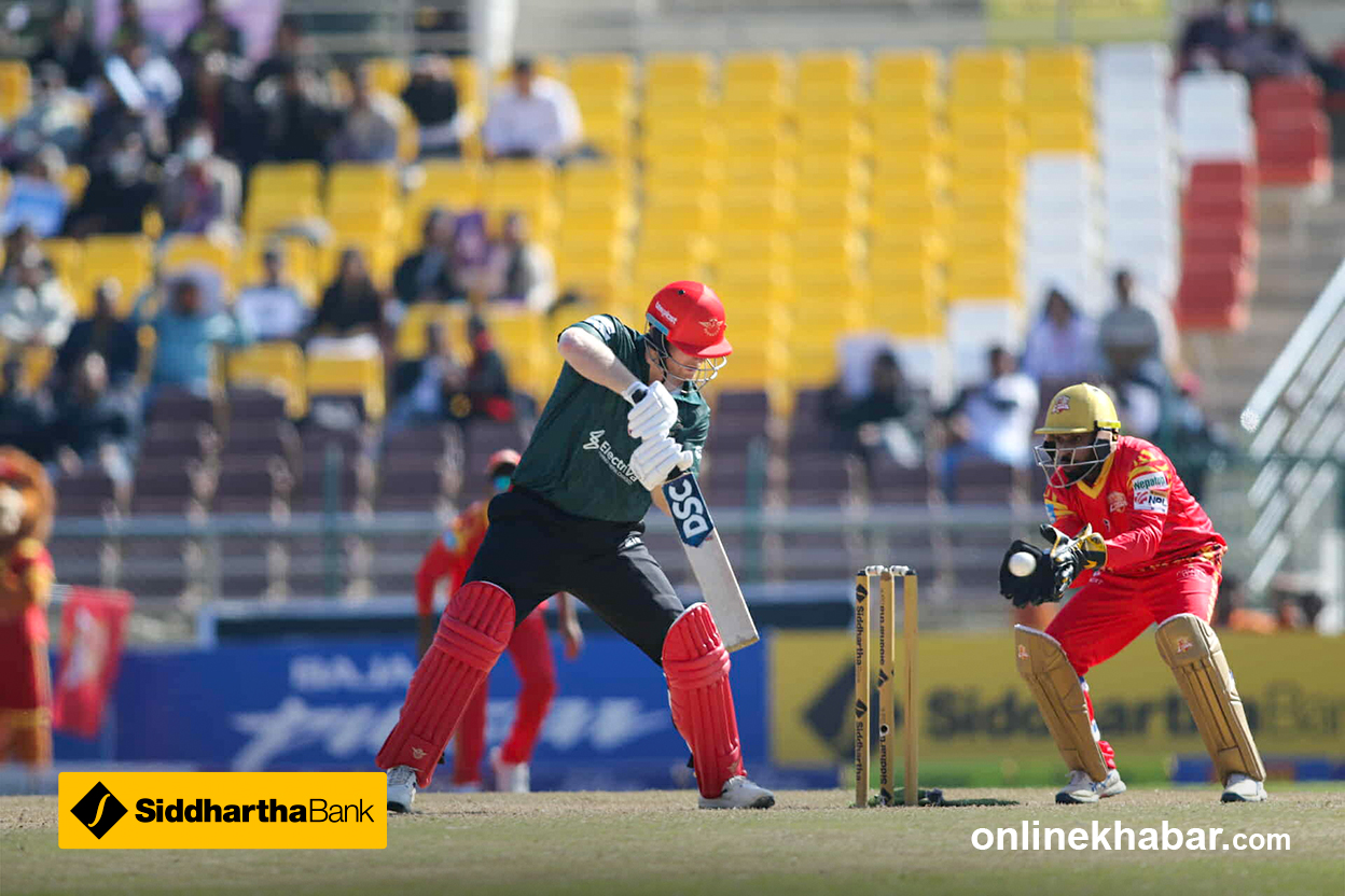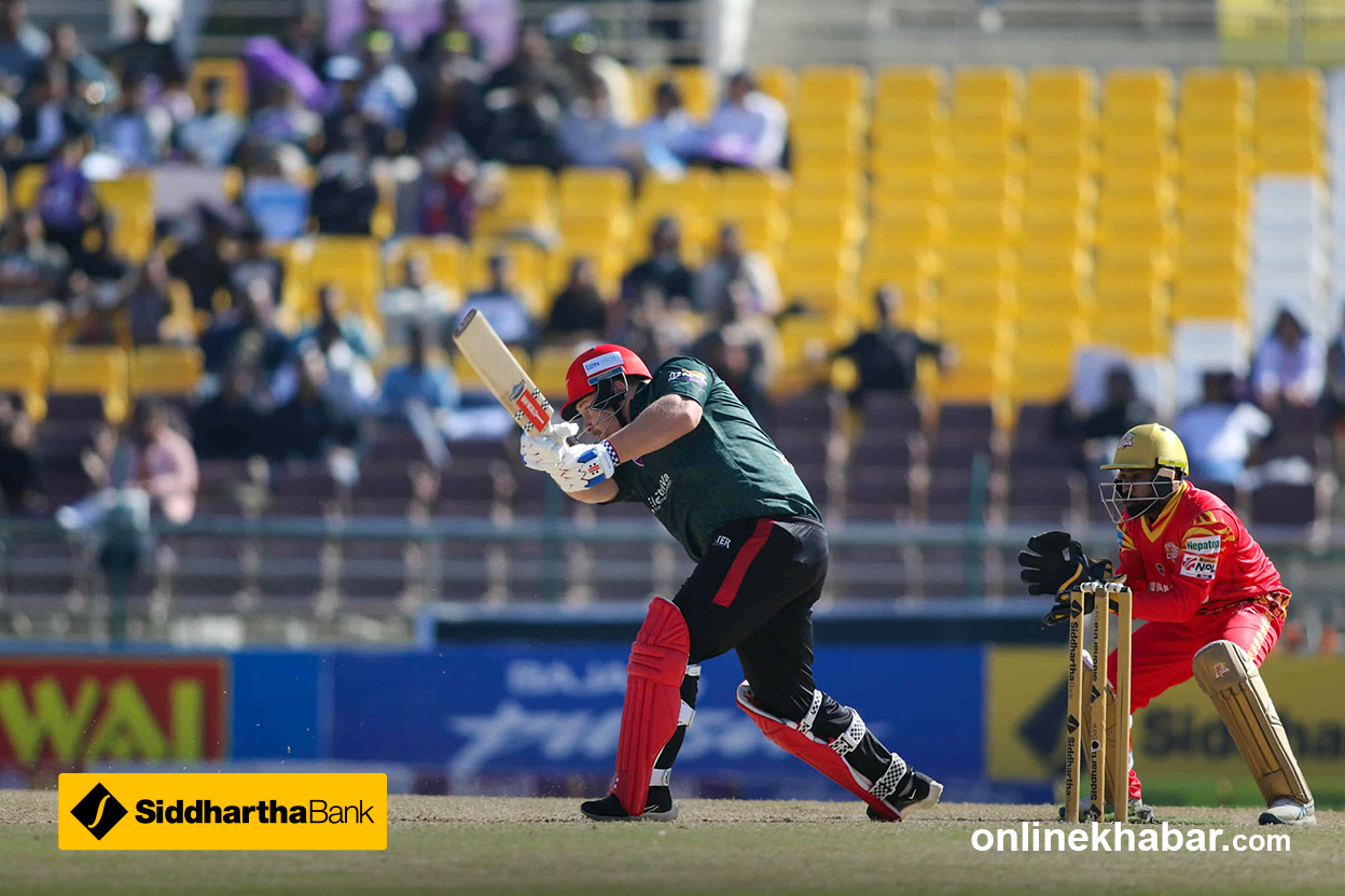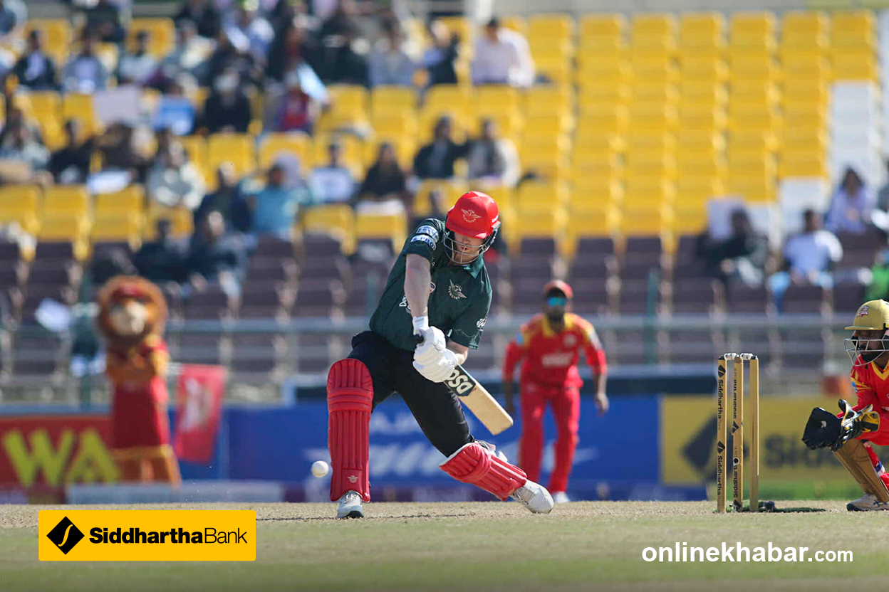 लुम्बिनी लायन्सले एनपीएलको दोस्रो सिजनमा दोस्रो जित हात पारेको छ । मिडल अर्डरले संयमित ब्याटिङ गरेपछि १५१ रनको लक्ष्य दुई बल अगाडि पूरा गर्दै लुम्बिनीले पोखरालाई ३ विकेटले पराजित गरेको हो । लुम्बिनीका लागि कप्तान रोहित पौडेलले सर्वाधिक ४० रन बनाउँदा यसै खेलबाट एनपीएलमा डेब्यु गरेका श्रीलंकन विकेटकिपर ब्याटर निरोशन डिकवेलाले ३७ रन योगदान गरे । चौका प्रहार गर्दै गेम फिनिस गरेका सन्दिप जोराले अविजित २५ रन बनाए । पहिलो खेलमै चितवनलाई हराएर राम्रो सुरुवात गरेपनि त्यसपछि लगातार तीन खेल गुमाएको लुम्बिनीलाई यो जितले प्रेसर रिलिज गरेको छ । ५ खेल खेलिकसकेो लुम्बिनी ४ अंक जोड्दै पाँचौ स्थानमा उक्लेको छ र प्लेअफको सम्भावना कायम राखेको छ । पोखराको यो भने तेस्रो हार हो । चार खेलबाट पोखराको २ अंक मात्र छ ।