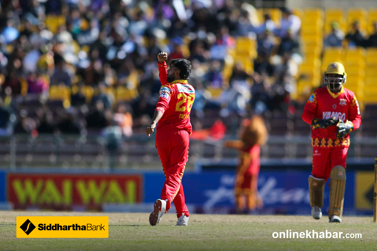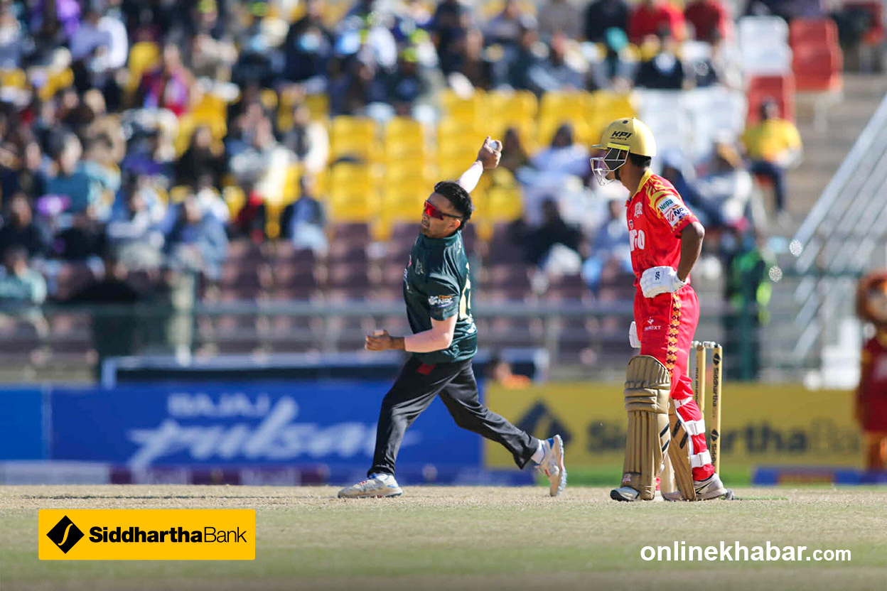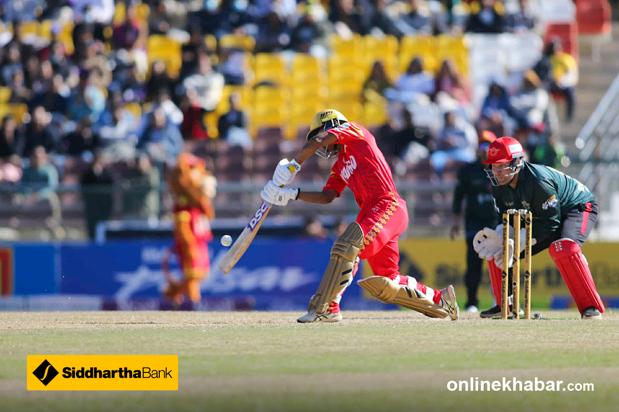 LBW ! GONE !! अघिल्लो खेलका स्टार ब्याटर सुमित आउट भएका छन् । पोखराले तेस्रो विकेट गुमाएको छ ।