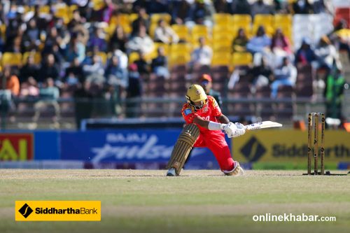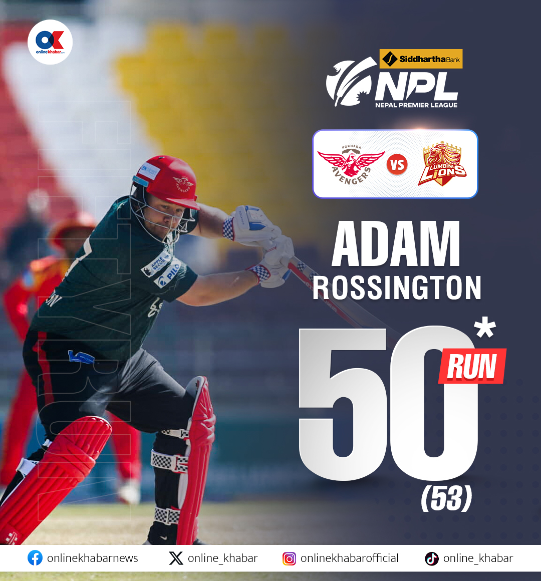 फाइन लेगमा चौका भएको छ । रोसिङटनले ५२ बलमा अर्धशतक पूरा गरेका छन् । यो एनपीएलकै सबैभन्दा ढिलो पूरा गरिएको अर्धशतक हो ।