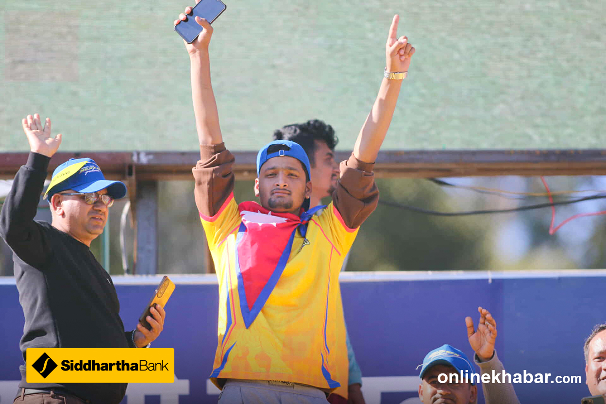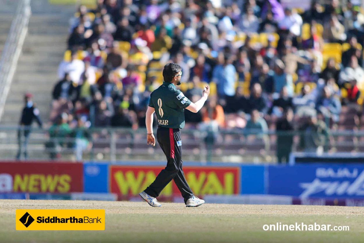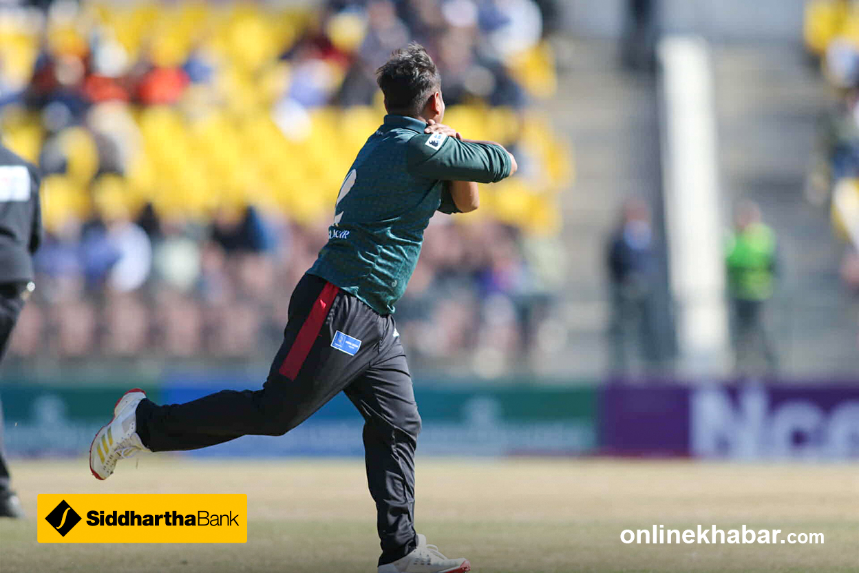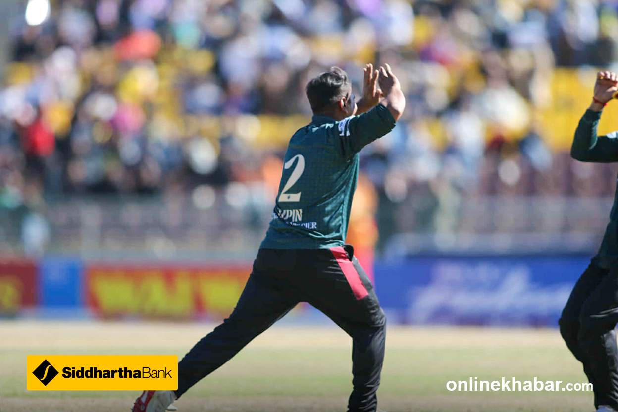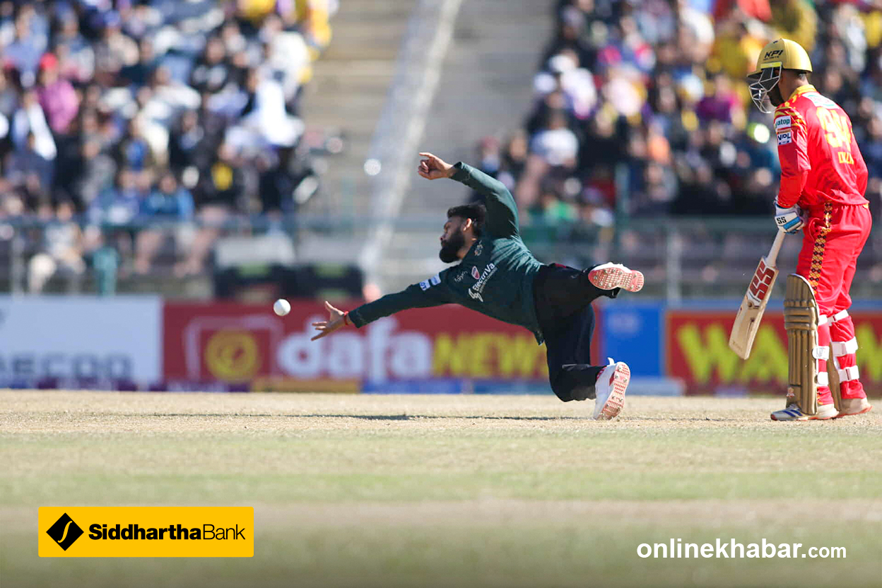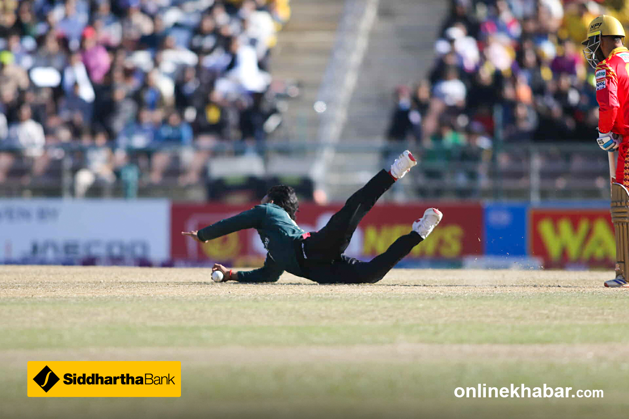 फाइन लेगमा रहेका दिनेश खरेल केही समस्यामा देखिएका छन् । फिजियो मैदानमा