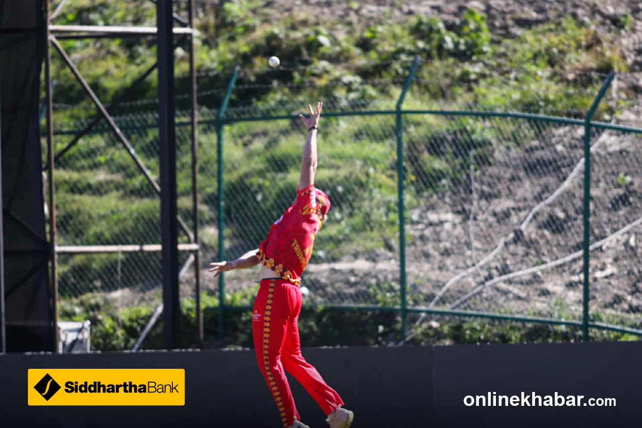 यसपटक बल माथि हावामा उठेको छ । मिडअनमा रोहित पौडेलले क्याच लिएका छन् ।