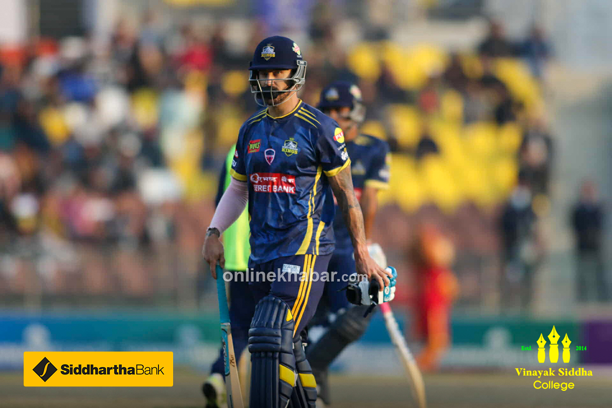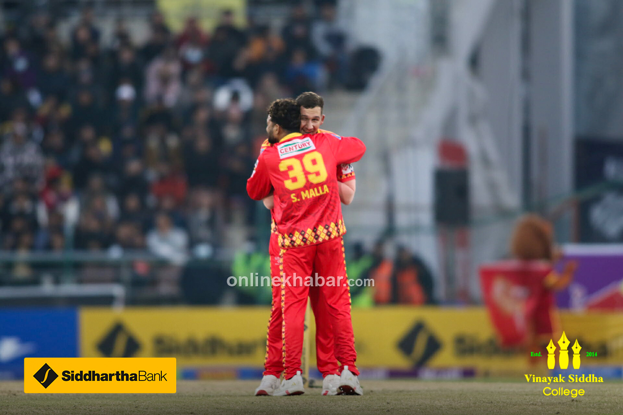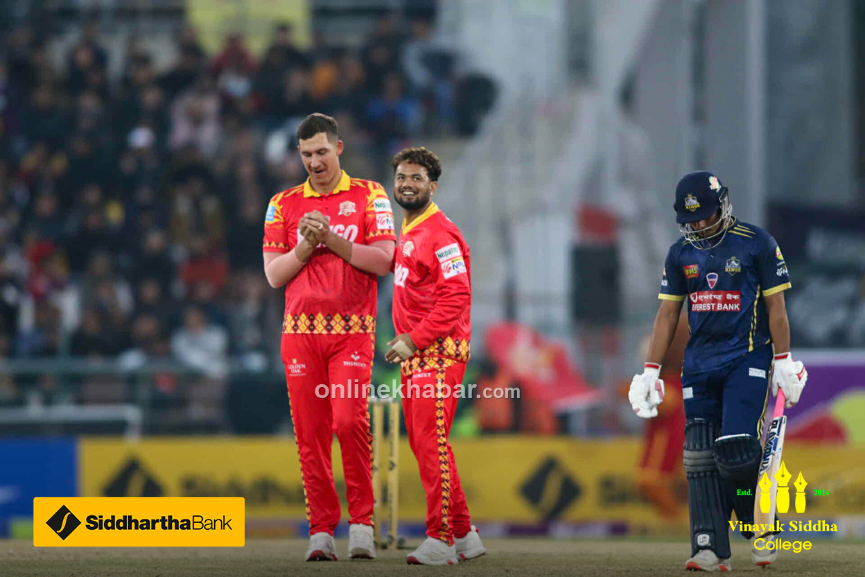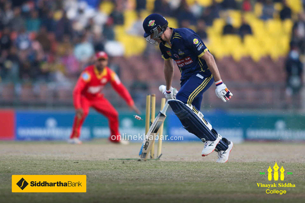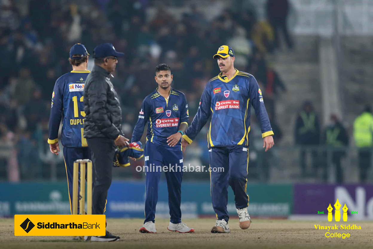 योसँगै आजको खेलको बल बाइ बल अपडेटबाट बिदा माग्न चाहन्छौं । भोलि दुई खेल हुँदैछन् । पोखरा एभेन्जर्स र काठमान्डु गोर्खाज तथा सुदूरपश्चिम रोयल्स र चितवन राइनोज खेल्दै छन् । बल बाइ बल अपडेट लिएर उपस्थित हुनेछौं । त्यतिन्जेल अनलाइनखबर फलो गर्दै गर्नुहोला । नमस्कार, शुभ रात्रि ।