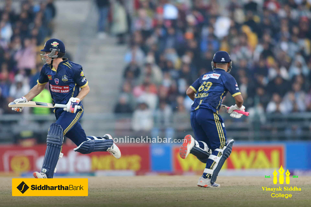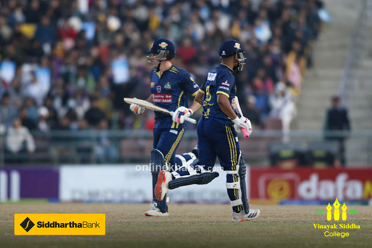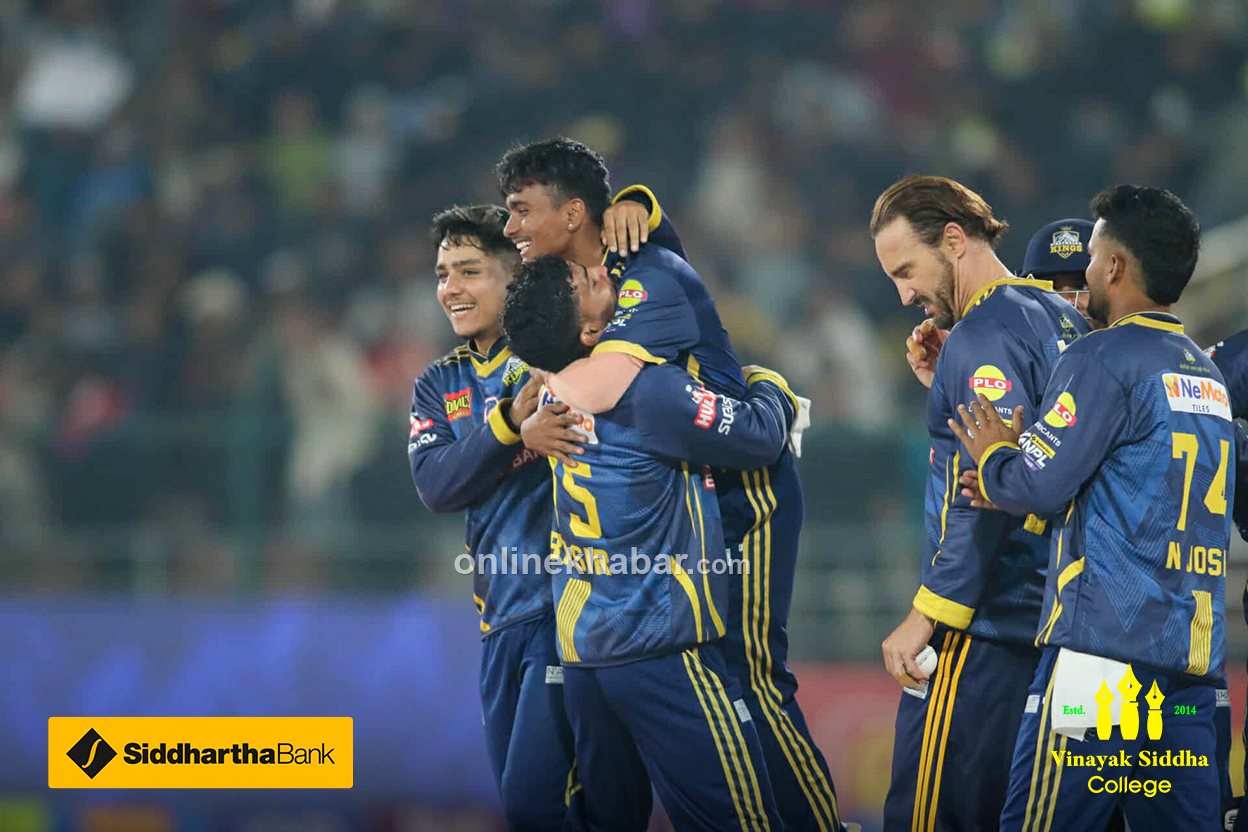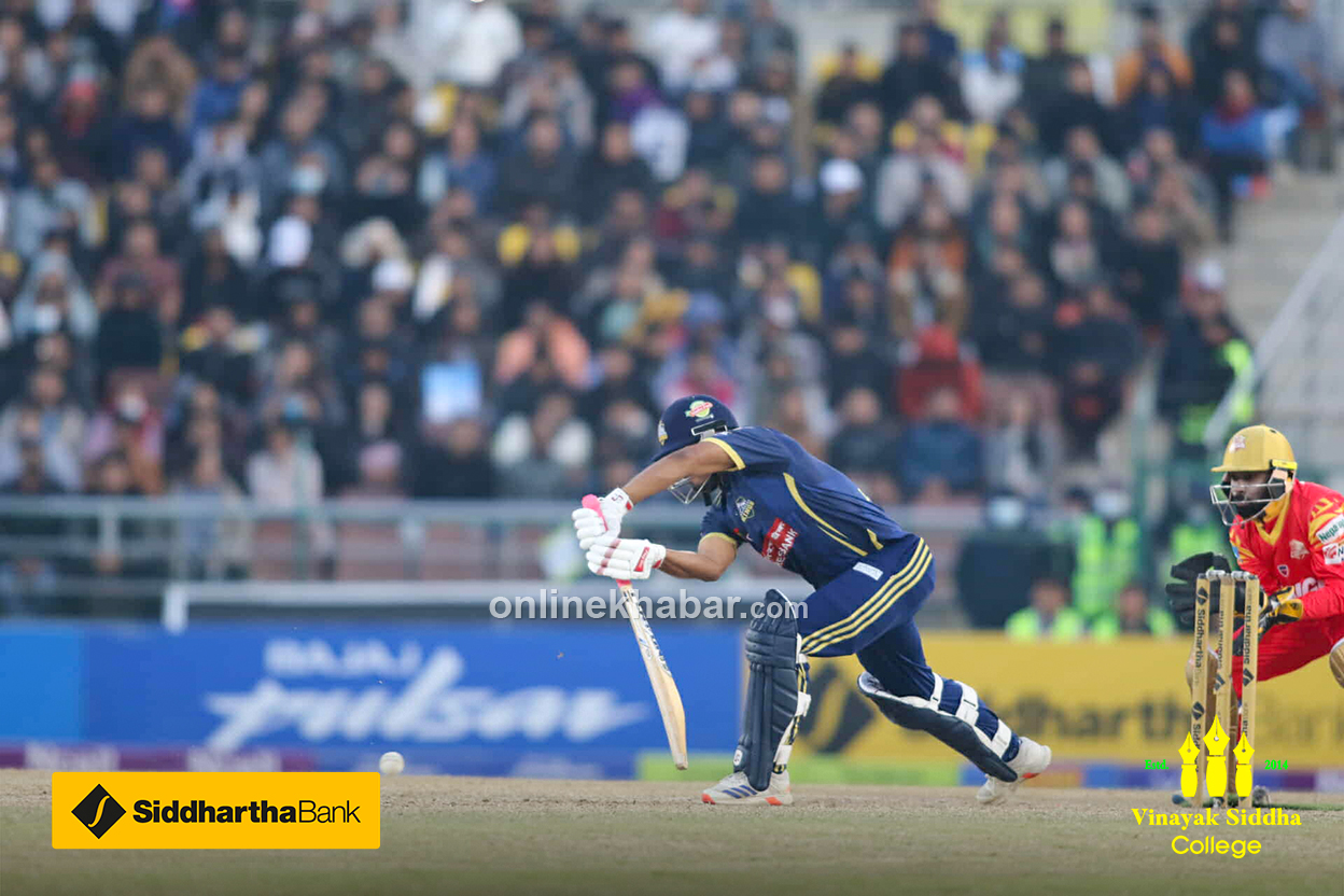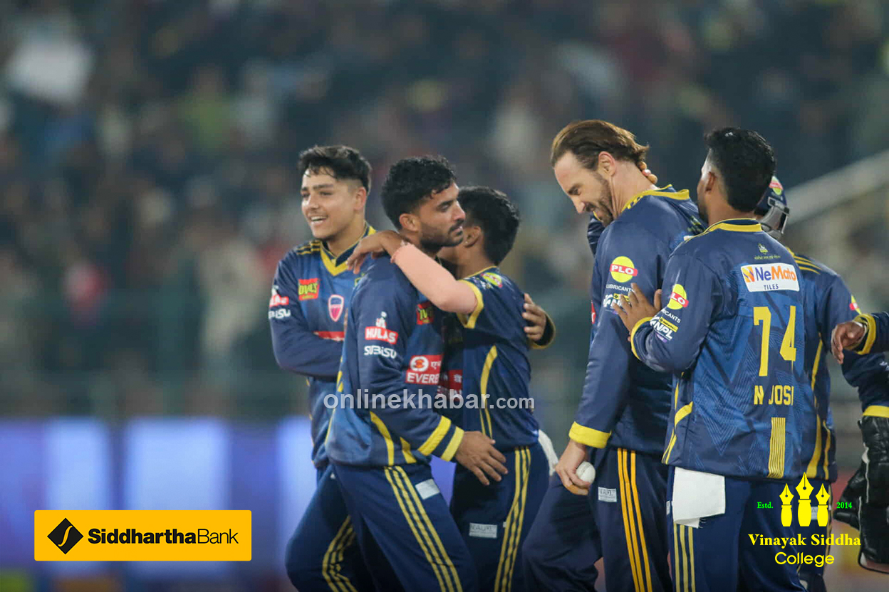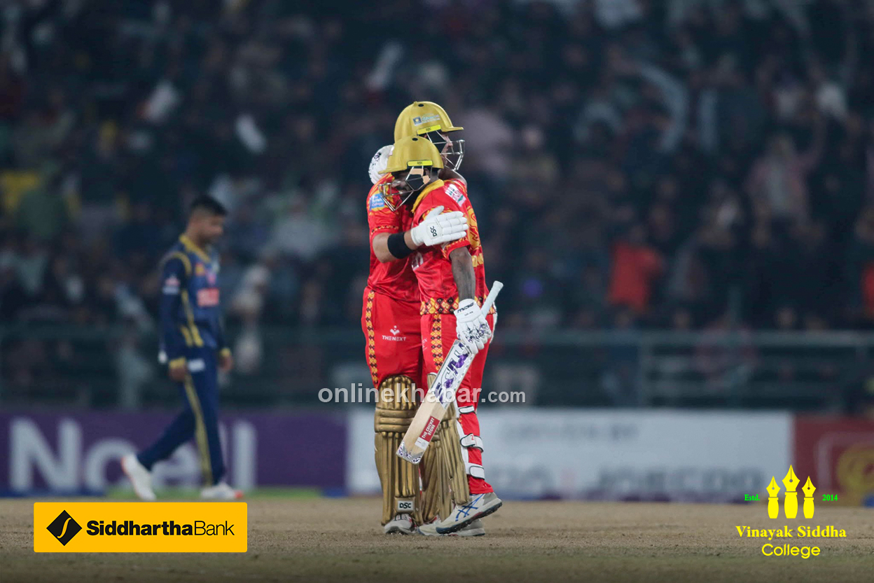 योसँगै आजको खेलको बल बाइ बल अपडेटबाट बिदा माग्न चाहन्छौं । भोलि दुई खेल हुँदैछन् । पोखरा एभेन्जर्स र काठमान्डु गोर्खाज तथा सुदूरपश्चिम रोयल्स र चितवन राइनोज खेल्दै छन् । बल बाइ बल अपडेट लिएर उपस्थित हुनेछौं । त्यतिन्जेल अनलाइनखबर फलो गर्दै गर्नुहोला । नमस्कार, शुभ रात्रि ।