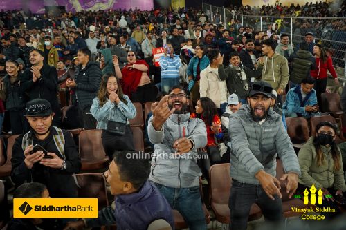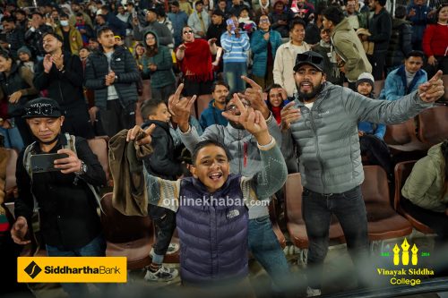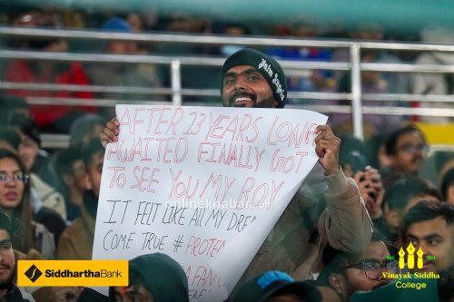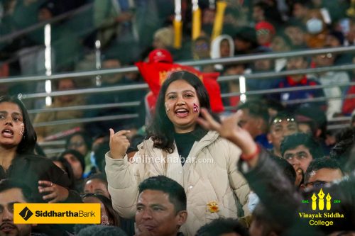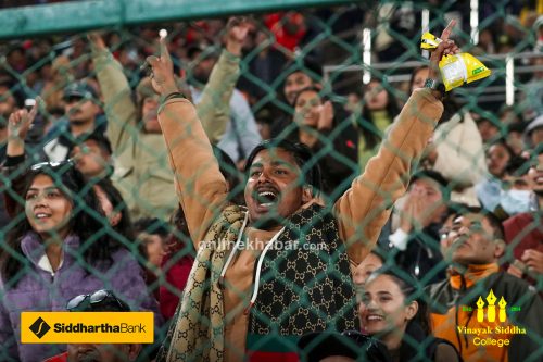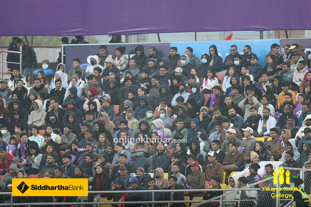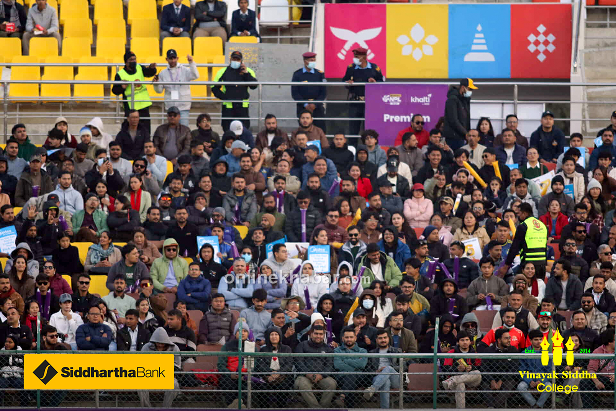 एज लागेर थर्डम्यानमा चौका भएको छ । दर्शकहरू विराटनगरको हरेक रनमा पनि उत्साहित छन् । विराटनगरका फ्यानको उपस्थिति धेरै ।