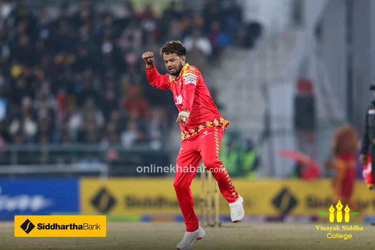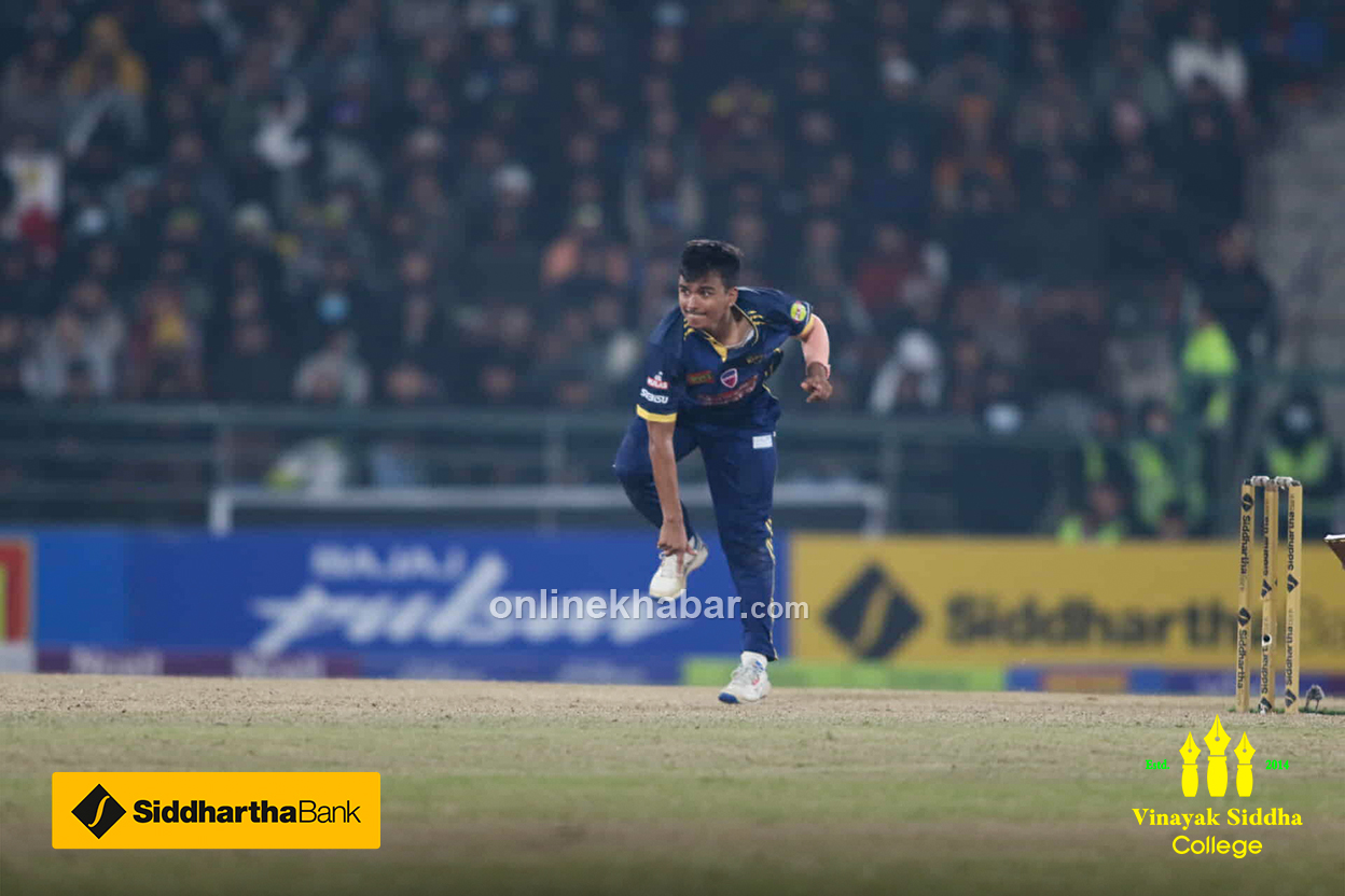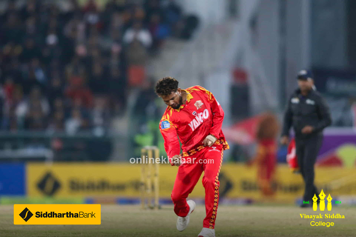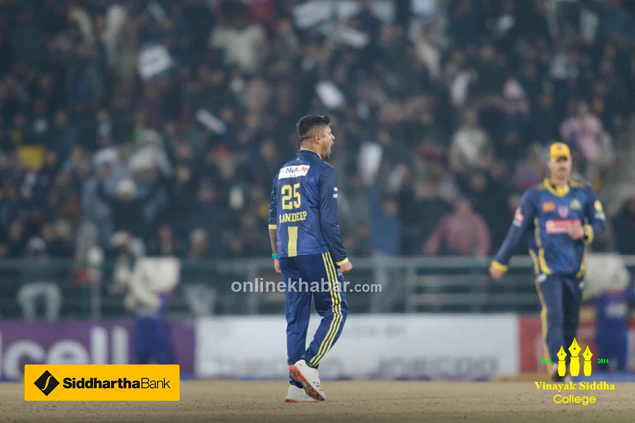 सन्दीपले जोराको विकेट लिएपछि विराटनगरले मोमेन्टम ब्रेक गरेको छ ।