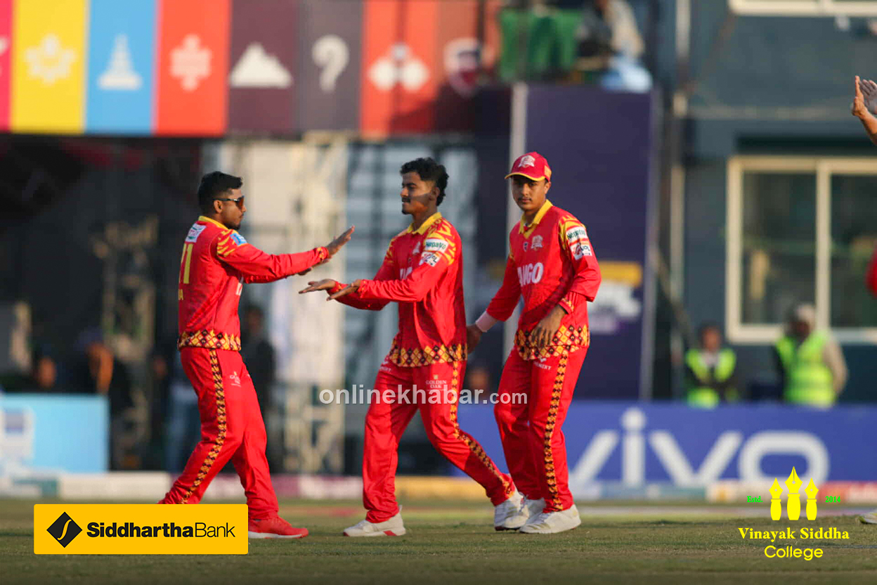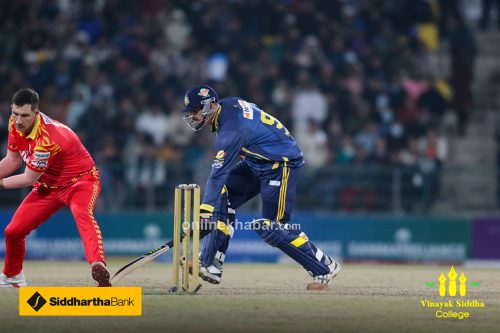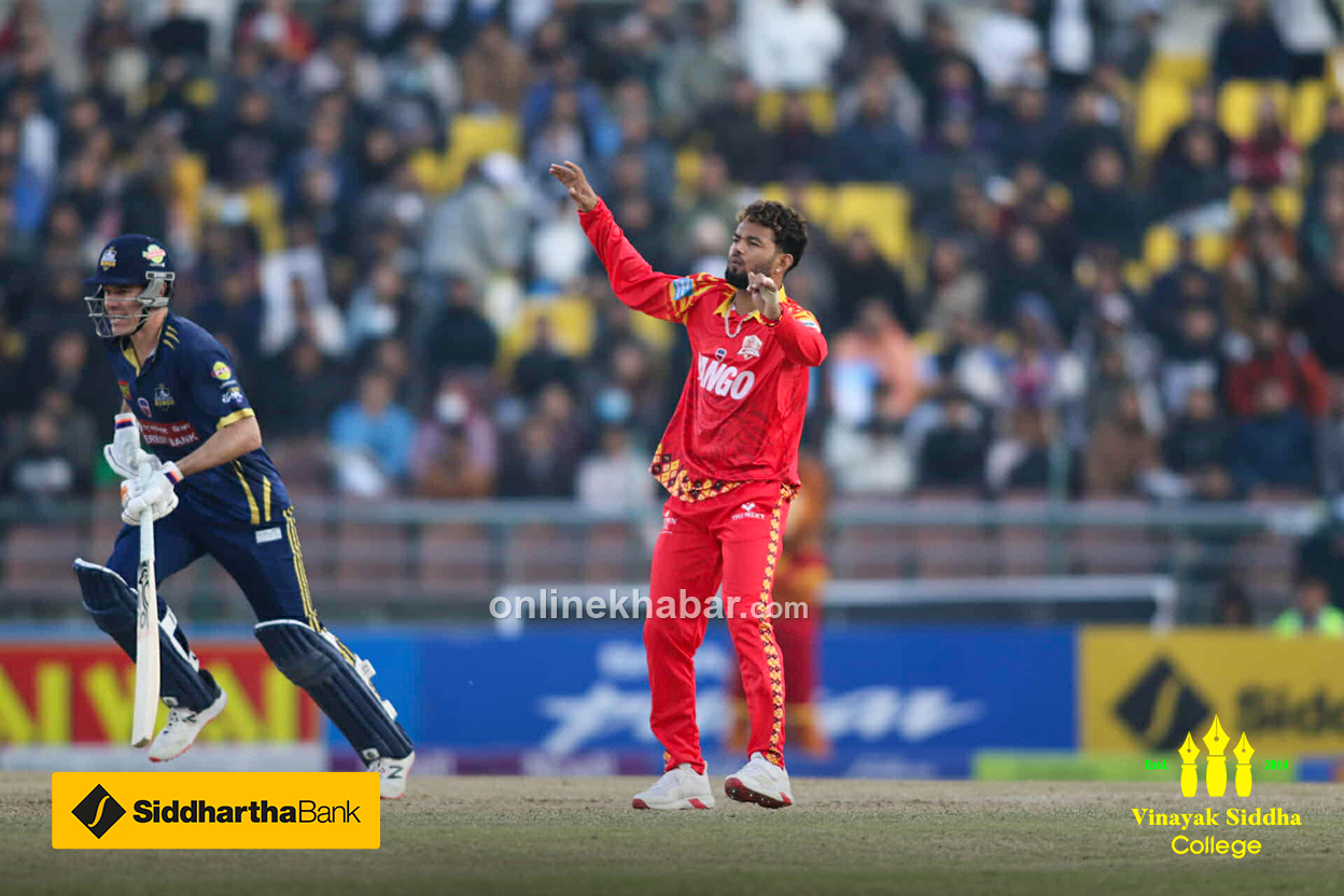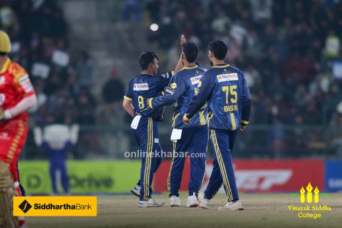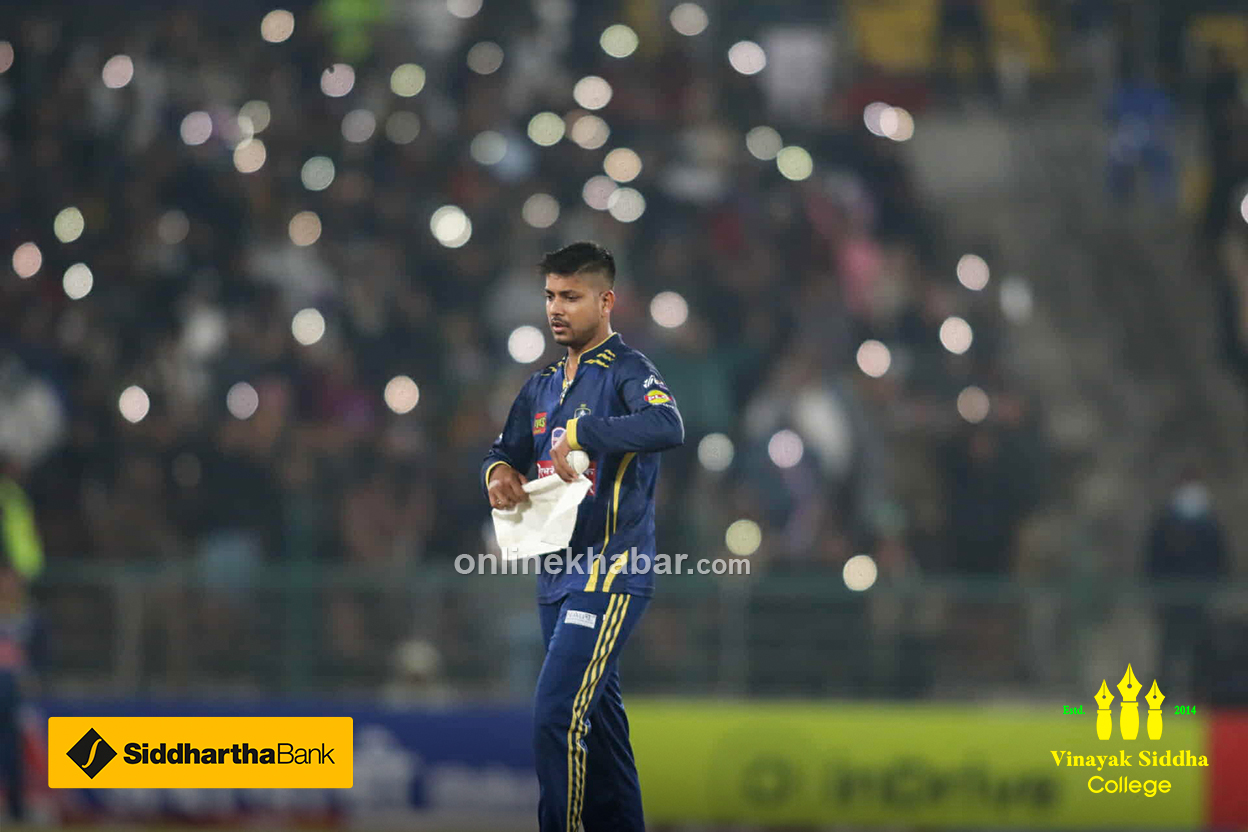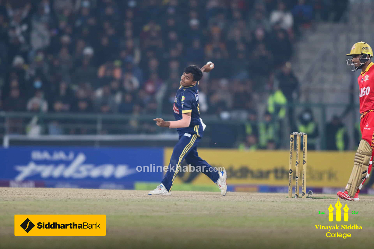 सन्दीपले जोराको विकेट लिएपछि विराटनगरले मोमेन्टम ब्रेक गरेको छ ।