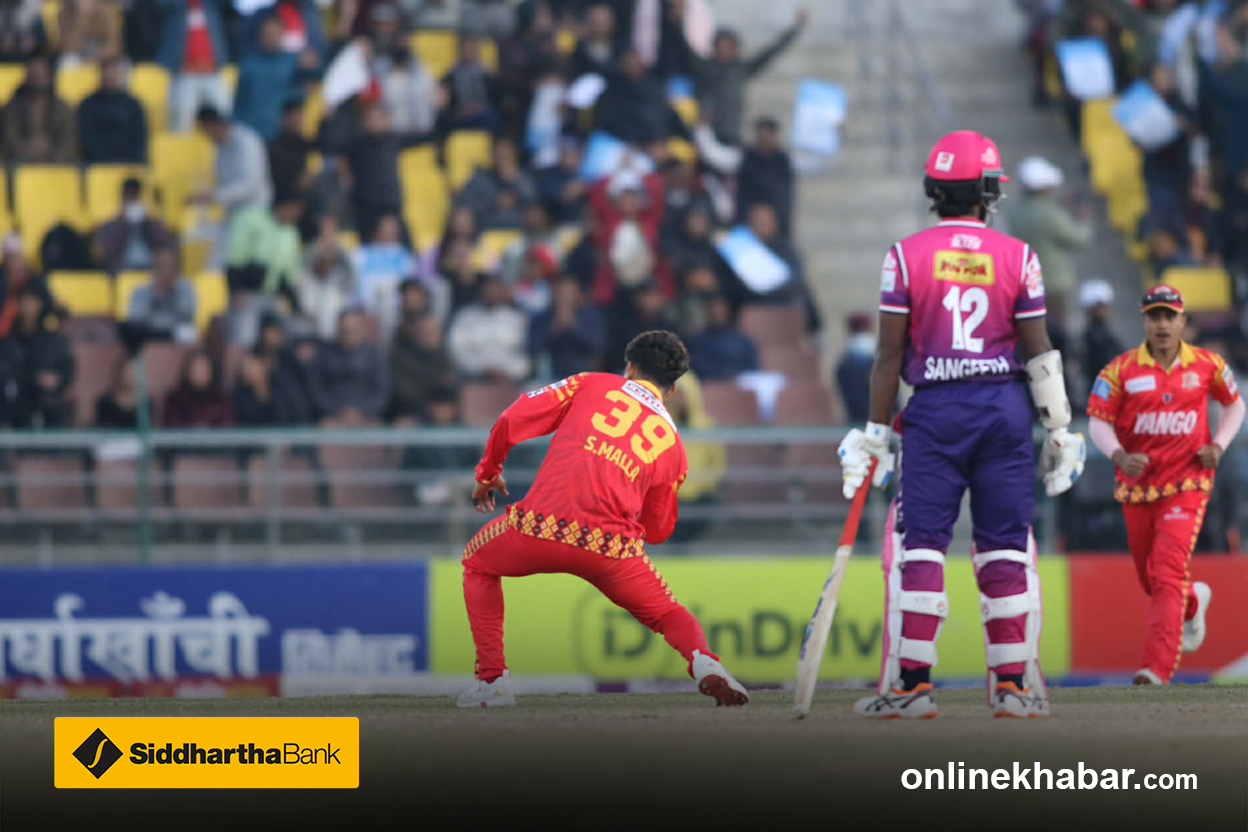 DROPPED ! डिप स्क्वायर लेगमा सन्दीप जोराले क्याच छाडेका छन् । लुम्बिनी फिल्डिङमा भने फितलो देखिएको छ ।
