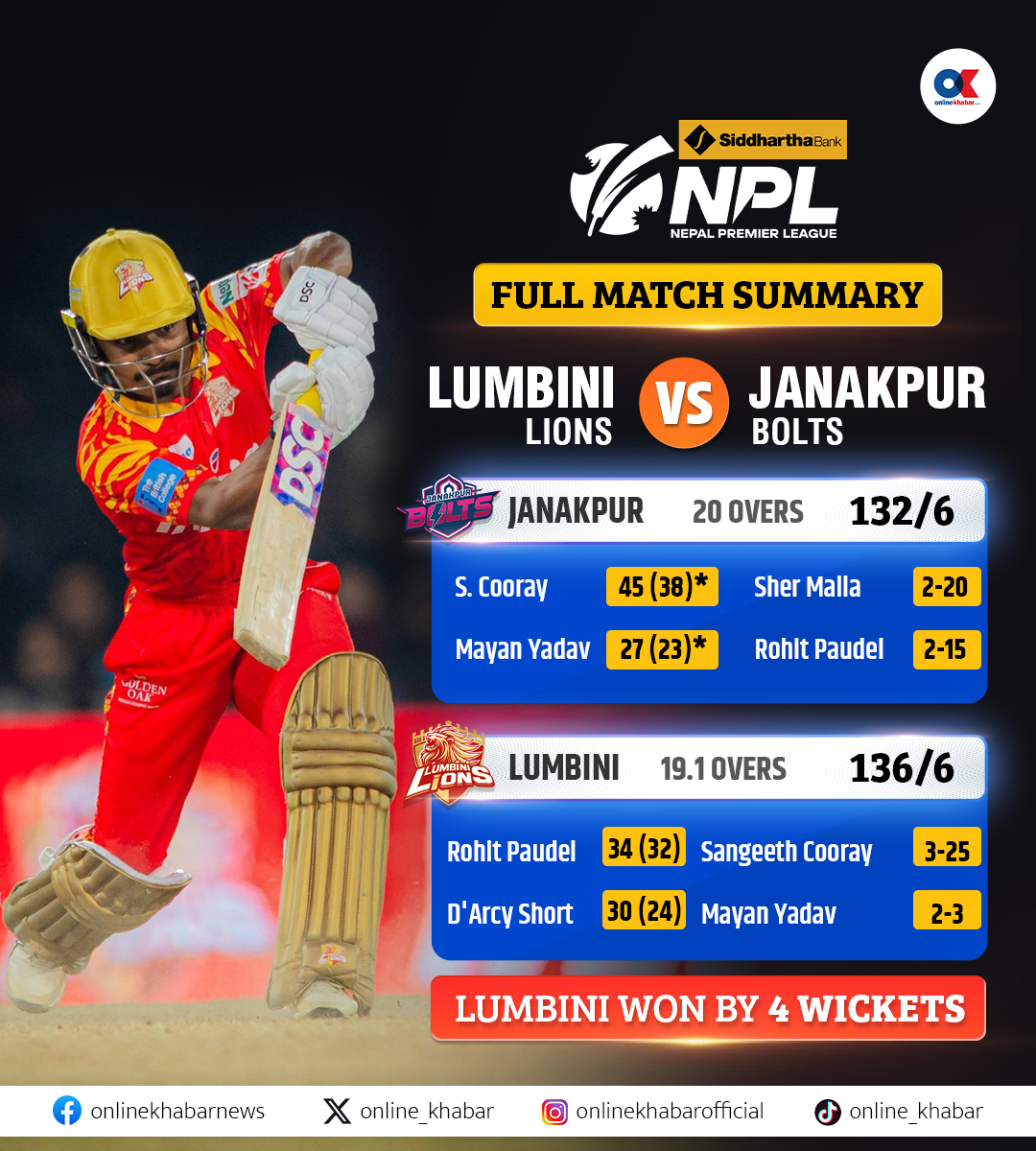 Lumbini Lions won by 4 wickets