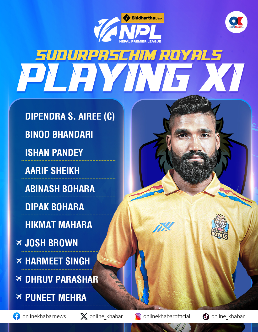 ब्याटिङमा प्रतिश जीसी पठाइएका छन् ।