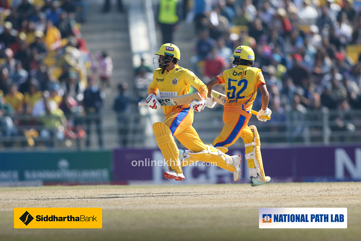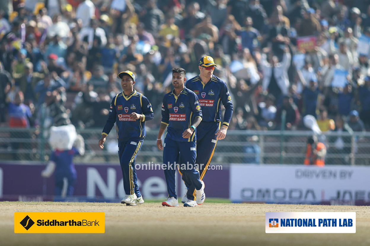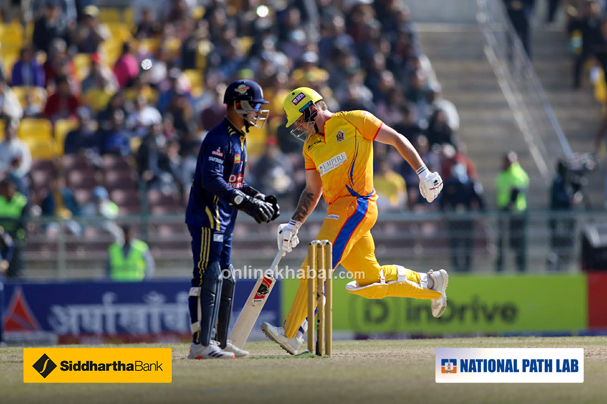 विराटनगर किङ्स यो खेल जित्ने पक्का भइसकेको छ । औपचारिकता मात्र बाँकी छ । अब जितका लागि ६० बलमा २१ रन आवश्यक छ । विराटनगर शीर्ष २ मा पुग्नका लागि २२ बलमा २१ रन आवश्यक ।