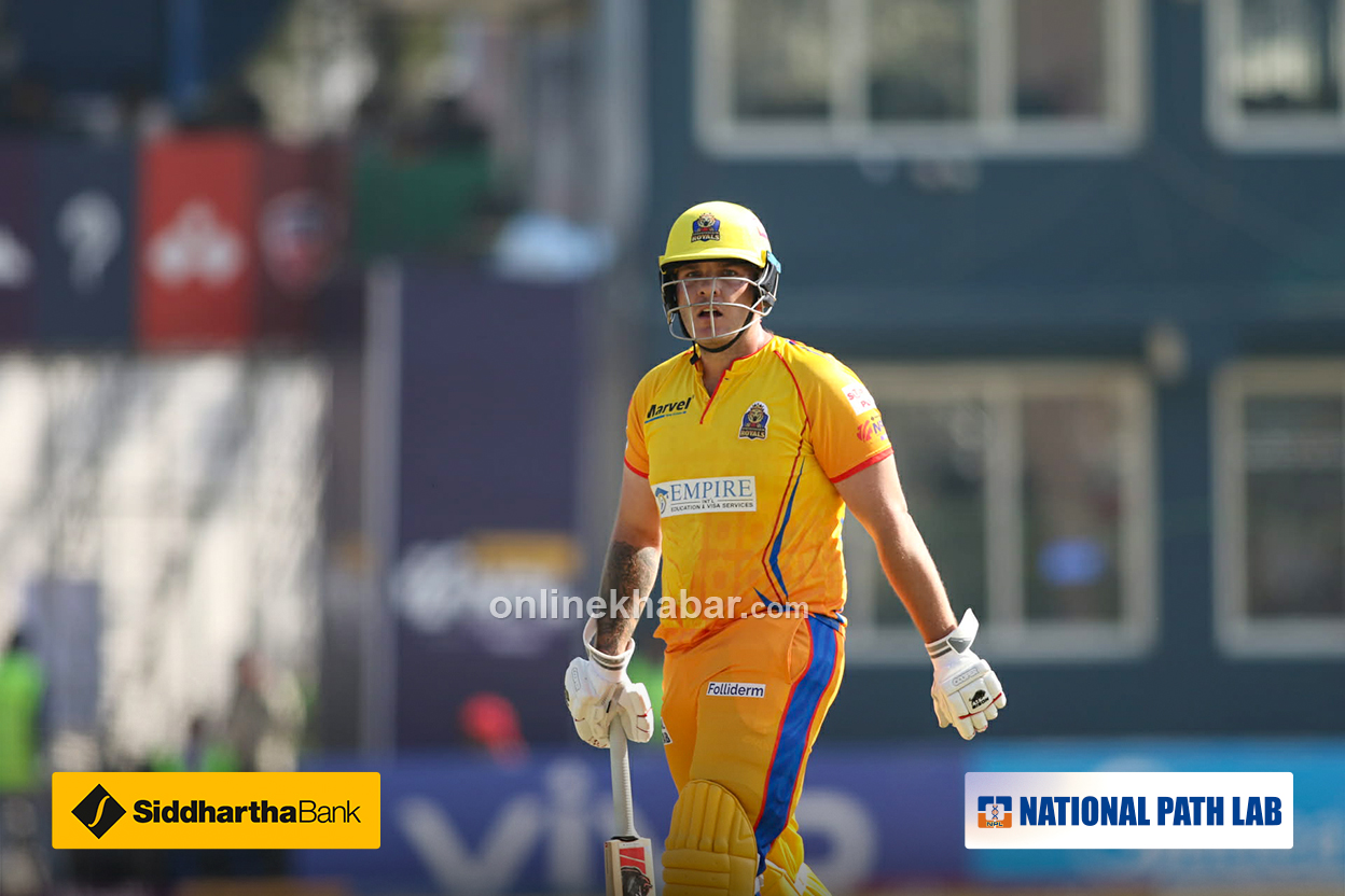 ठूलो शटका लागि गएका थिए । बल निकै माथि उठेको थियो, दूरी भने थिएन । लङअनमा साम हिजलेटले क्याच लिएका छन् ।