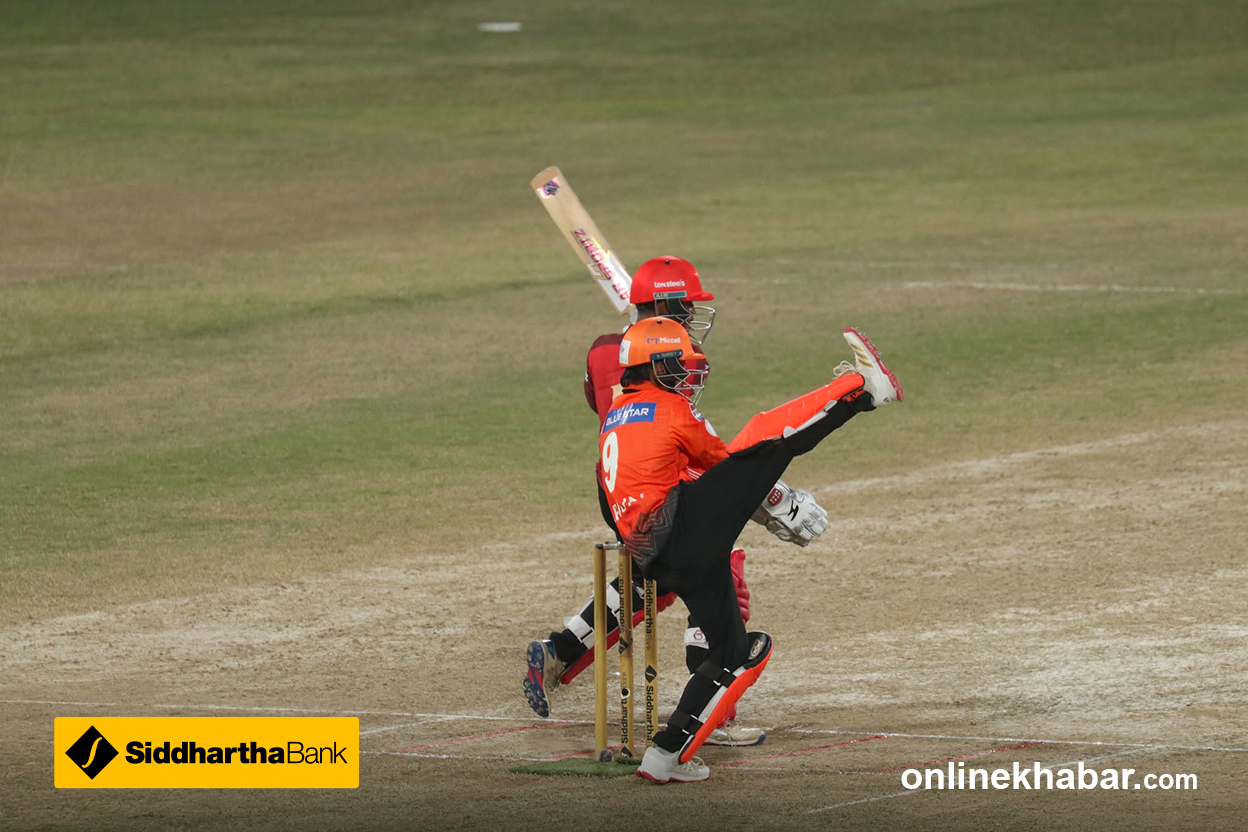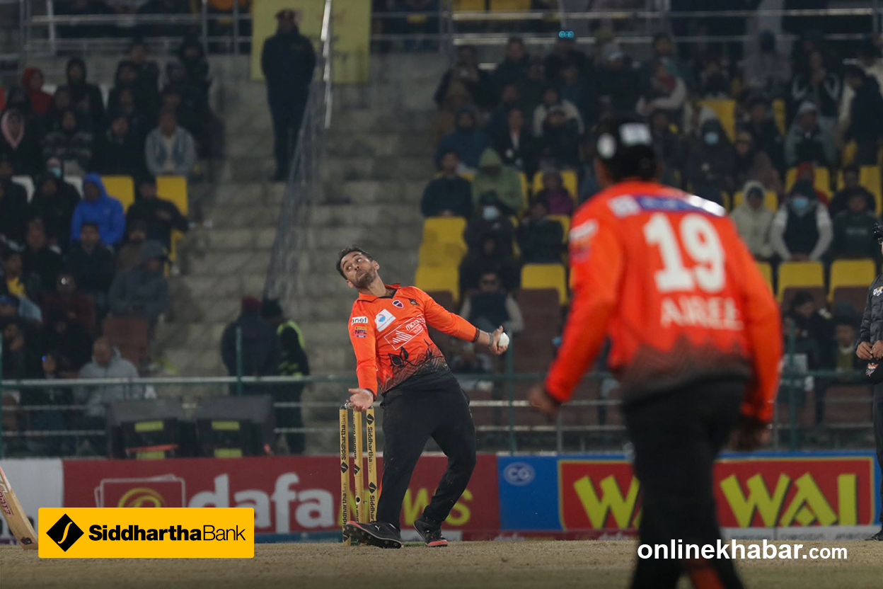 कुशल भुर्तेलको बलमा देव खनाल - १ रन