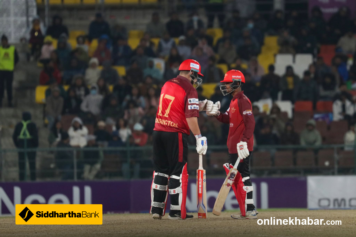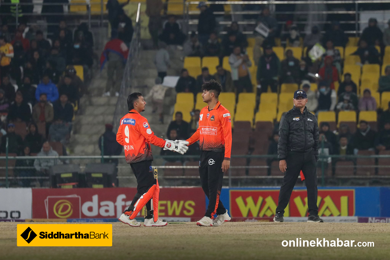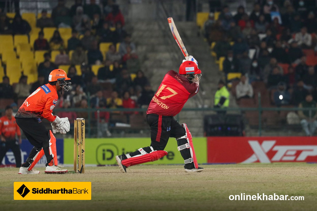 १२१ रनको लक्ष्य पोखराले अन्तिम ओभरसम्मै खेललाई पुर्याएर पूरा गरेको छ । ओपनर एडम रोसिङटनले ठूला शटहरू खेल्दा अर्जुनले संयमित ब्याटिङ गरे । रोसिङटन ६५ रनमा आउट भए भने अर्जुन ४३ रनमा अविजित रहे ।