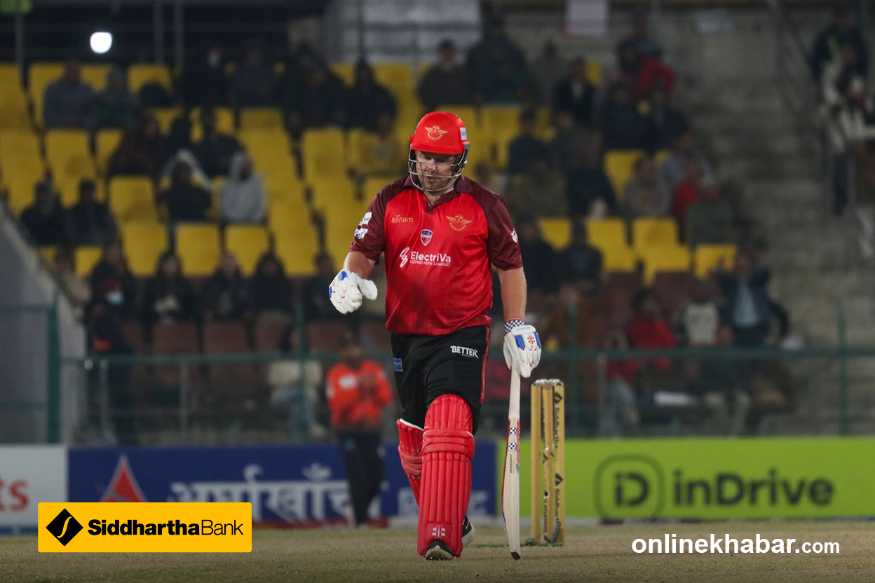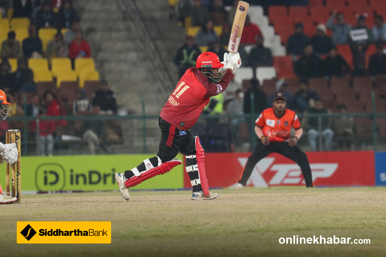 कुशल भुर्तेलको बलमा देव खनाल - २ रन