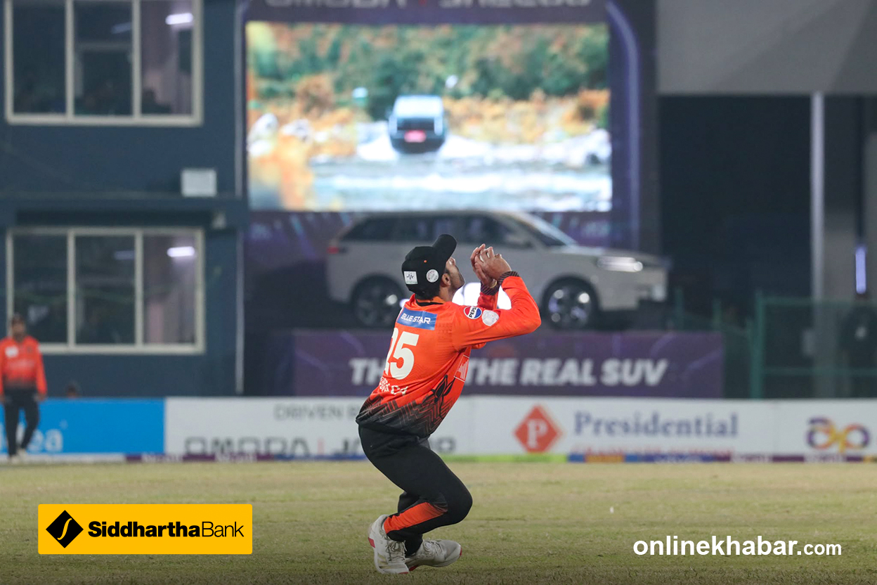 यसपटक पनि ठूलो शटका लागि गए तर बाउन्ड्रीमा क्याचआउट भएका छन् । चितवनलाई चौथो झट्का ।