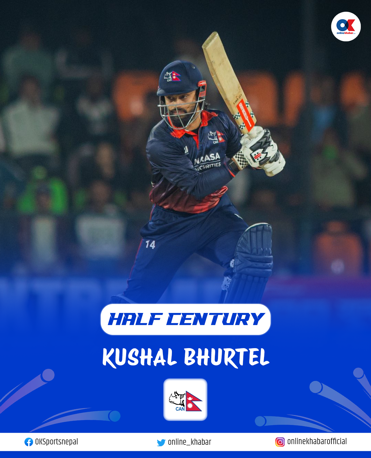 फूल टस बल थियो । छक्का प्रहार गरेका छन् । अर्धशतक पनि पूरा ।