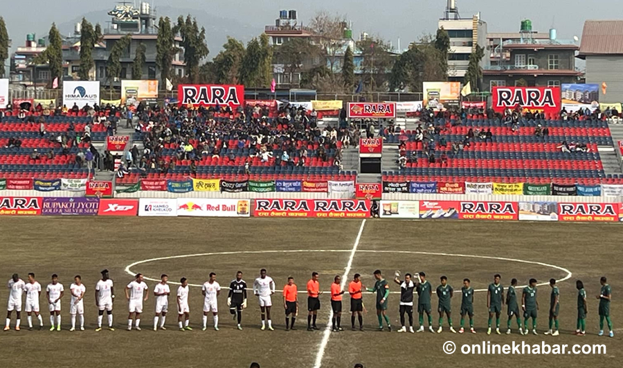 आर्मीका दिनेश हेन्जनको फ्रिकिकलाई विपक्षीको बक्समा रहेका टिममेटले सदुपयोग गर्न सकेनन् ।